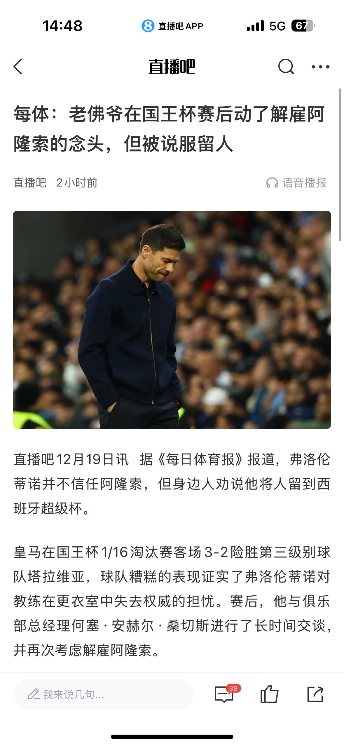 弗洛伦蒂诺想解雇阿隆索了! 这才上任几个月,看来四大皆空必走。 哪有教练刚来皇马就能夺冠? 我感觉皇马太心急,再给阿隆索半年时间吧,毕竟德甲冠军教练。[震惊]