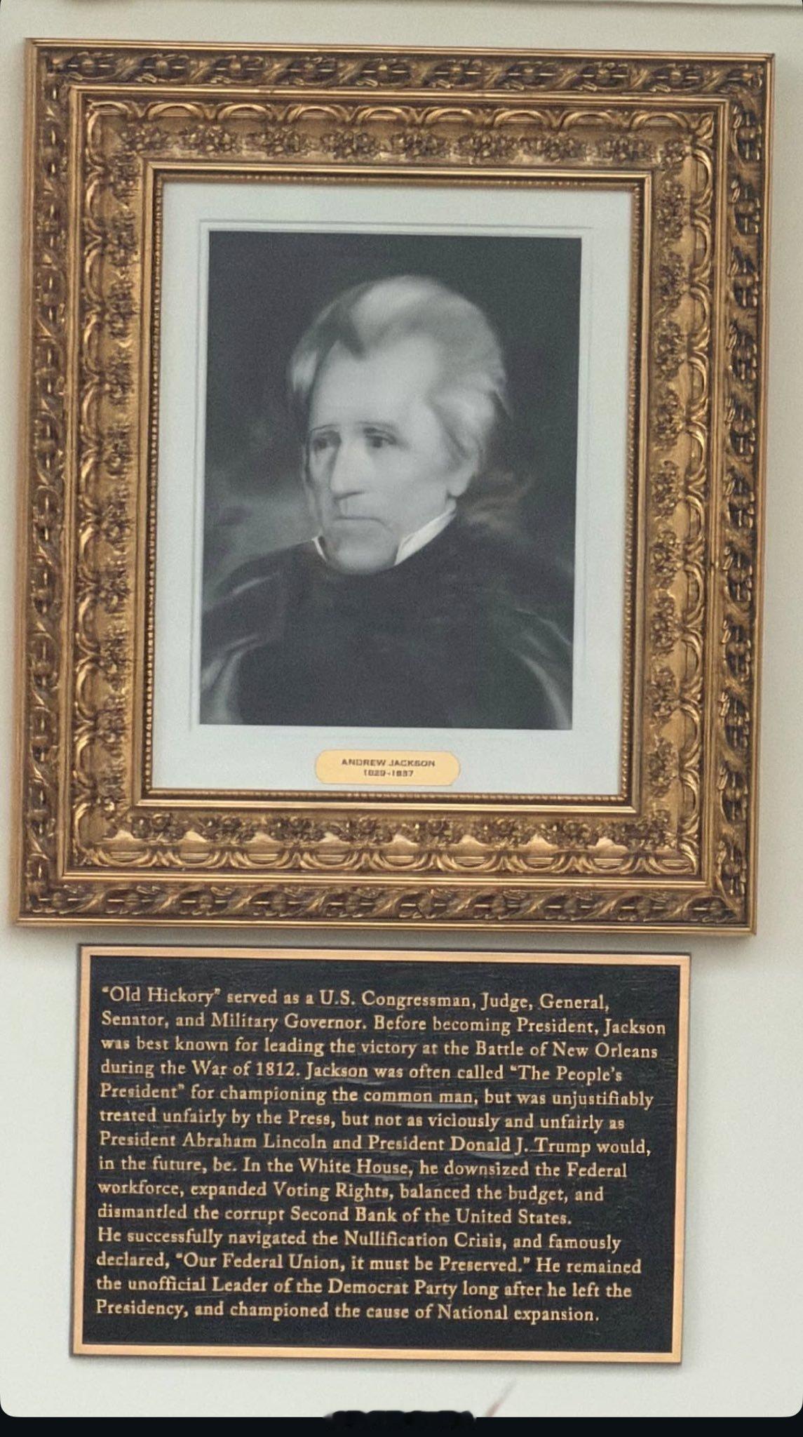 白宫记者在第7任美国总统安德鲁杰克逊的铭文中发现了特朗普的名字杰克逊因捍卫普通民众而常被称为”人民的总统",但媒体对他不公正的对待却是毫无道理的,不过这种对待的恶劣程度远不及后来亚伯拉罕•林肯总统和唐纳德•J•特朗普总统所遭受的。热点现场