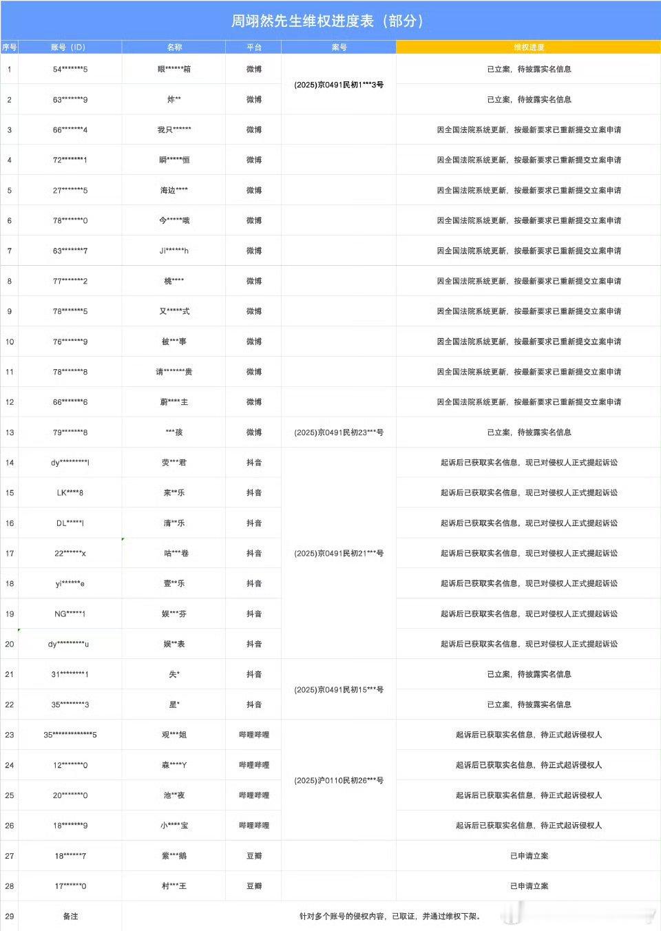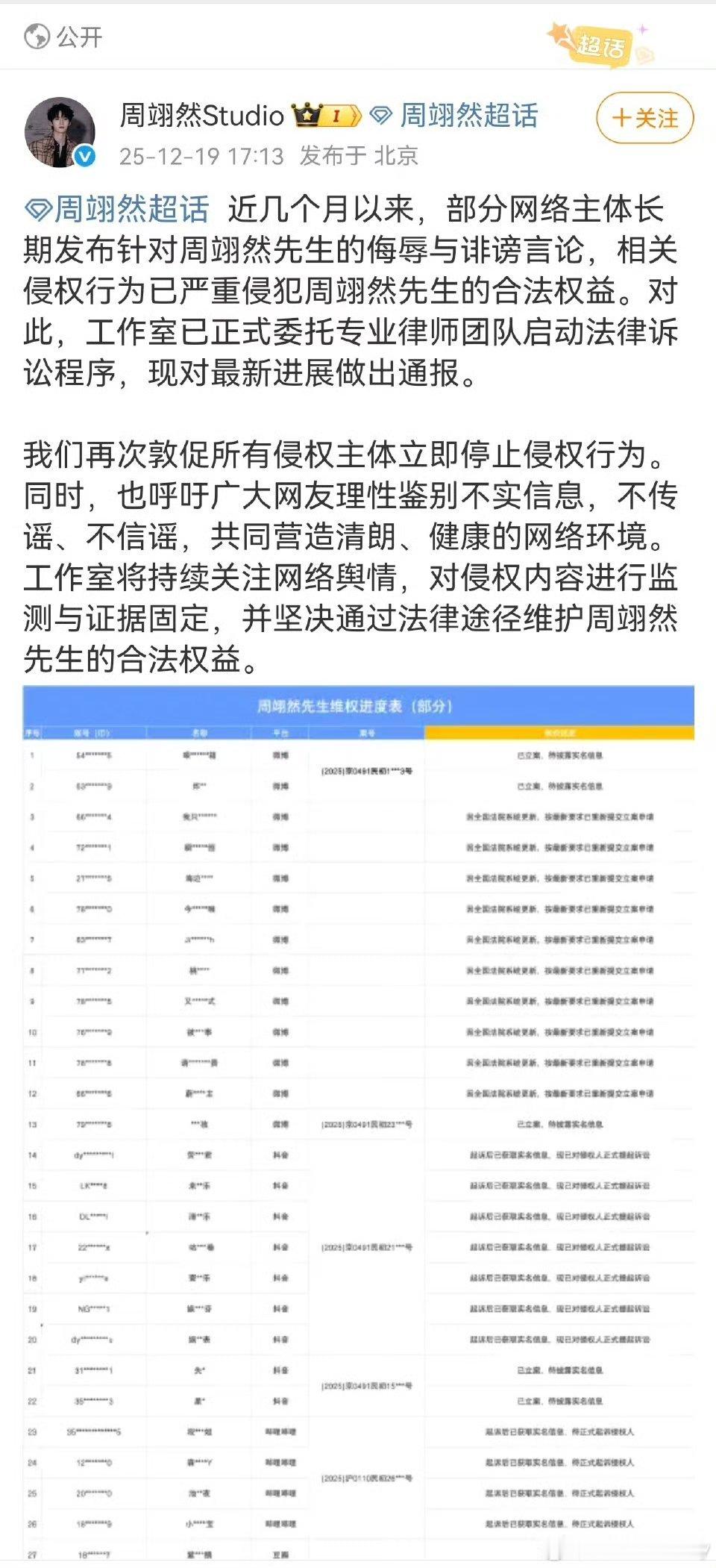 周翊然工作室公布了告黑进度,已经立案的一大条,支持帅哥维权!