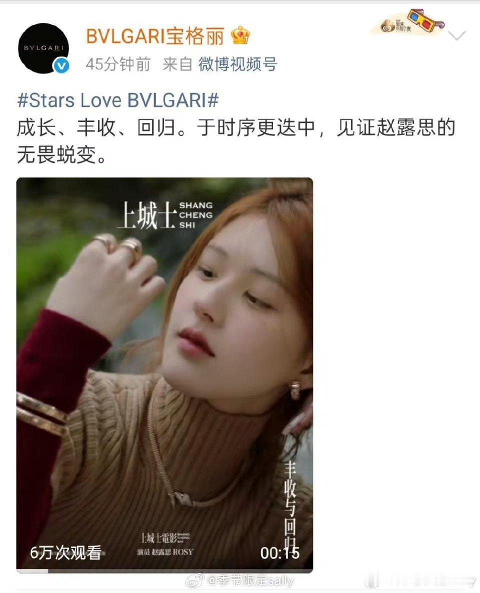 宝格丽微博连发三条认领赵露思,且抖和红薯等全平台都发了,爆剧🌸的商业价值不需要质疑!