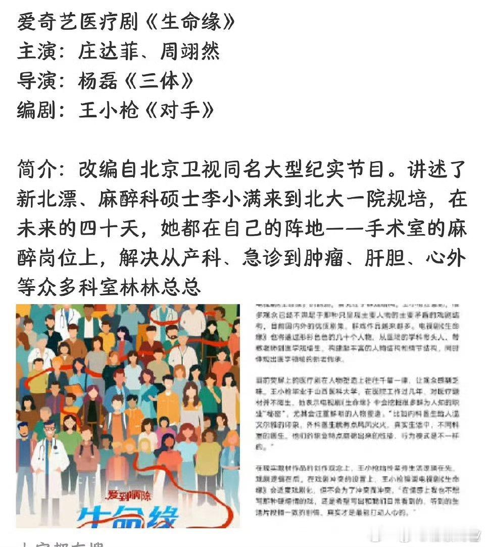 🥝医疗剧《生命缘》 庄达菲 周翊然二搭主演