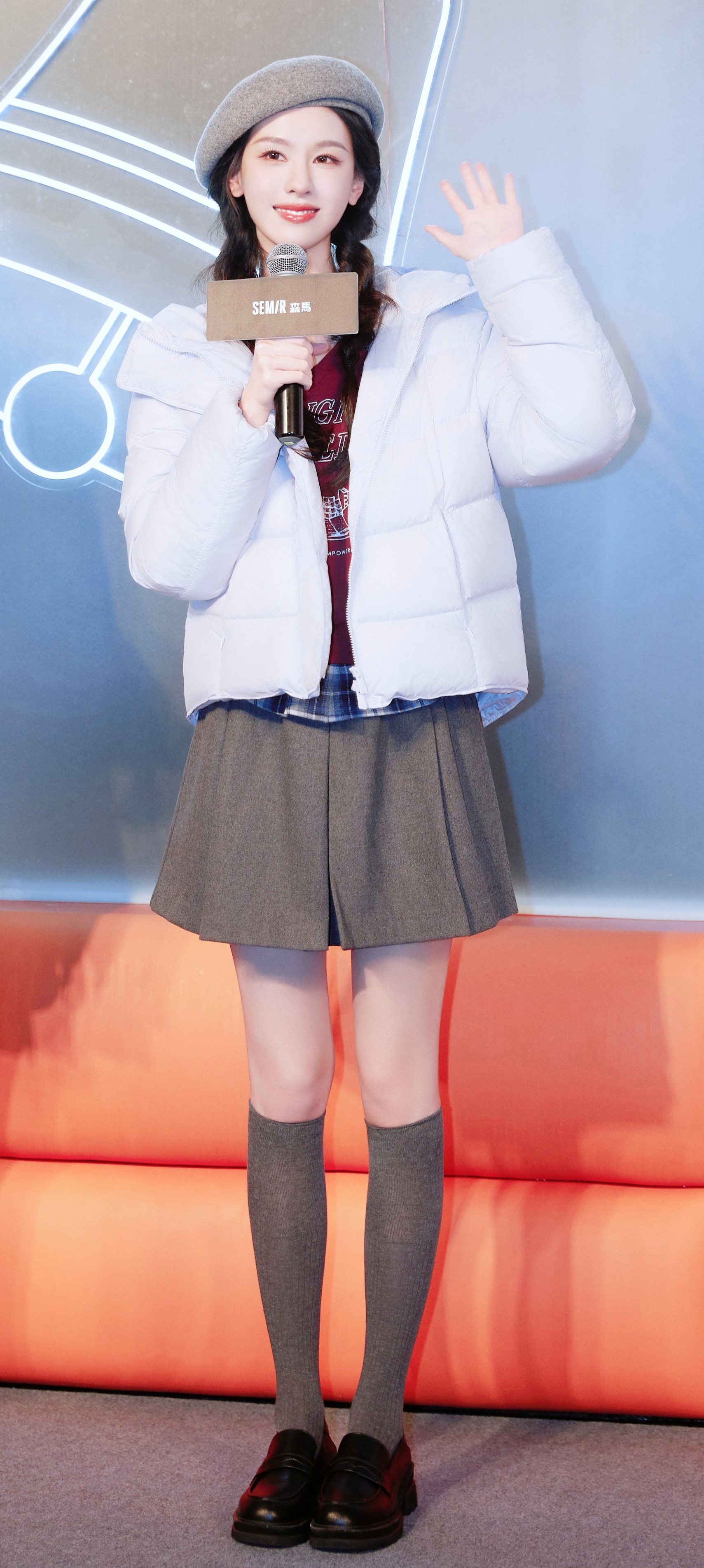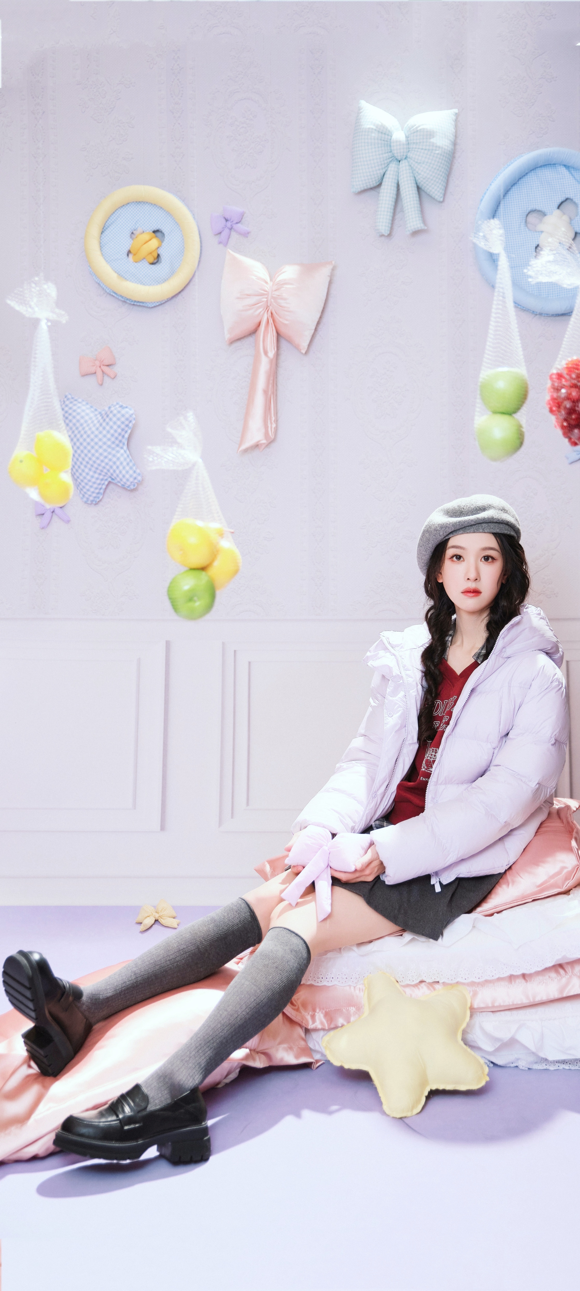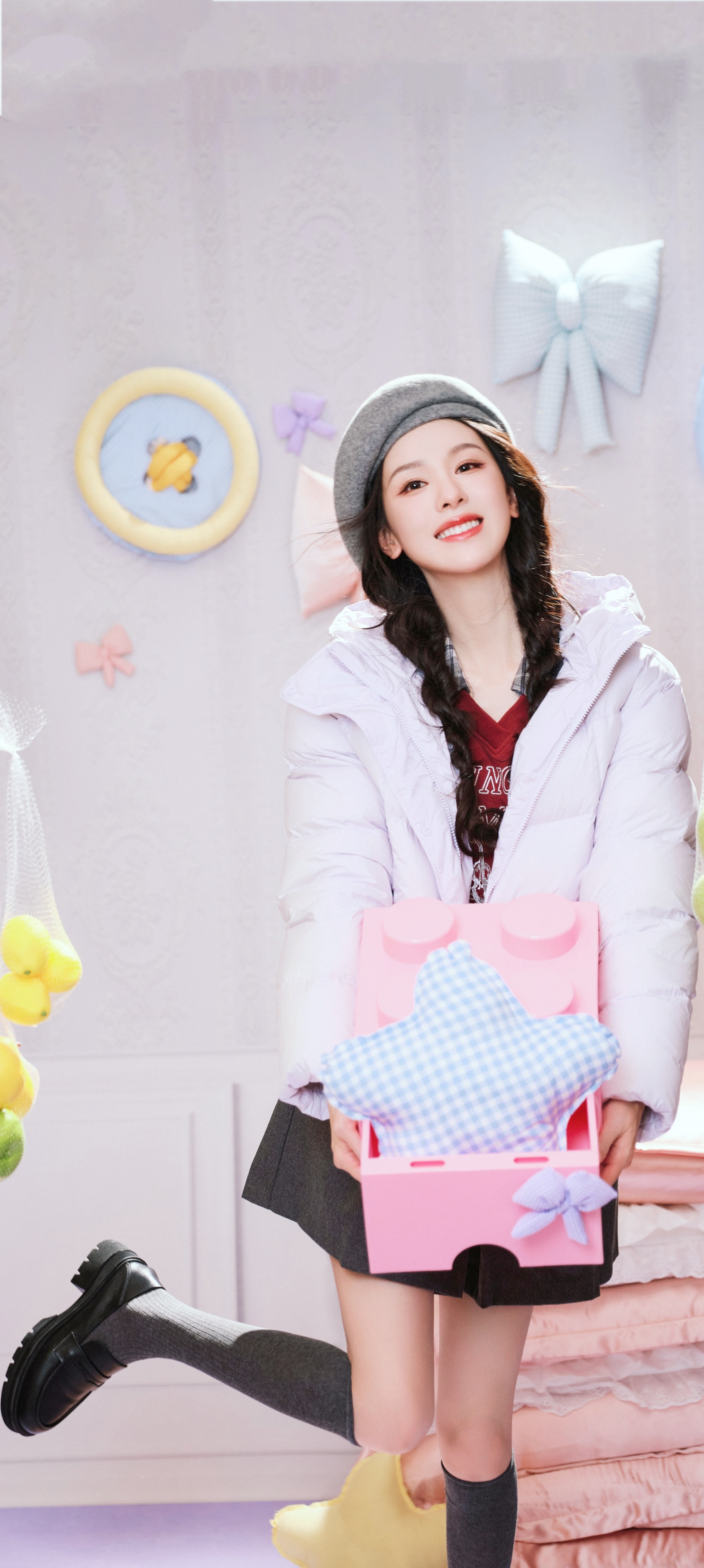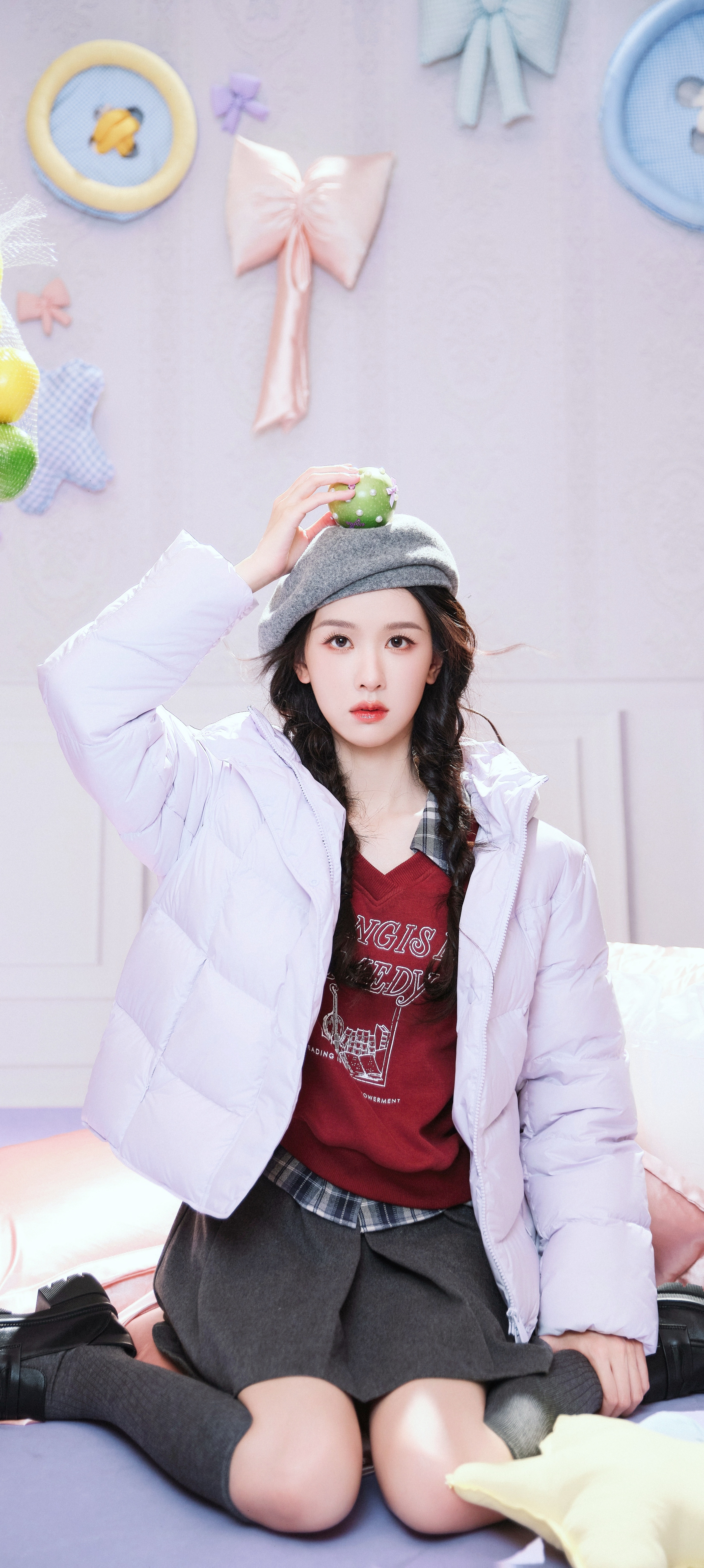 陈都灵双麻花辫贝雷帽造型 陈都灵新鲜全屏壁纸,冬日甜美少女穿搭,美腿吸睛。陈都灵