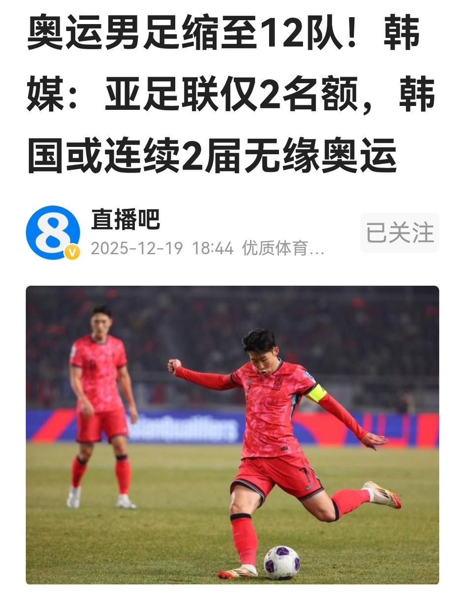 大喜!2028奥运足球赛缩减名额的消息,让韩媒忧心忡忡,但反让中国足球毫无压力。 FIFA发布公告,洛杉矶奥运足球由16队减成12队,分给亚足联只有2个名额。这样一来,传统的日韩伊沙澳,加上新生力量约旦和乌兹别克队,谁能代表亚洲出赛,成为很大的谜。 所以韩媒的担忧很有道理,上届奥运会就缺席的韩国队将面临更大压力。但中国队早已习惯了不参加世界大赛,不会再加管理者和球迷给安东尼奥的u23施加压力,整个足球界可能都因此出了一口长气。[笑哭][笑哭]
