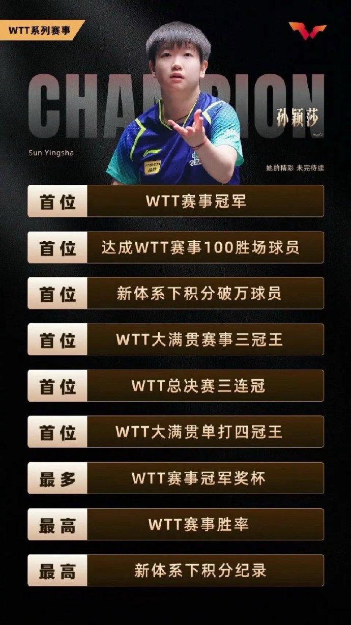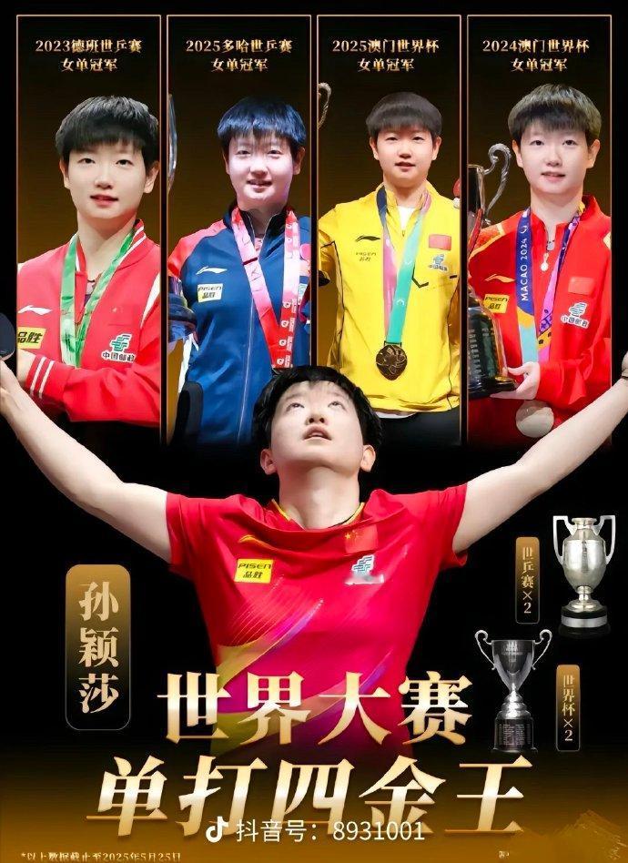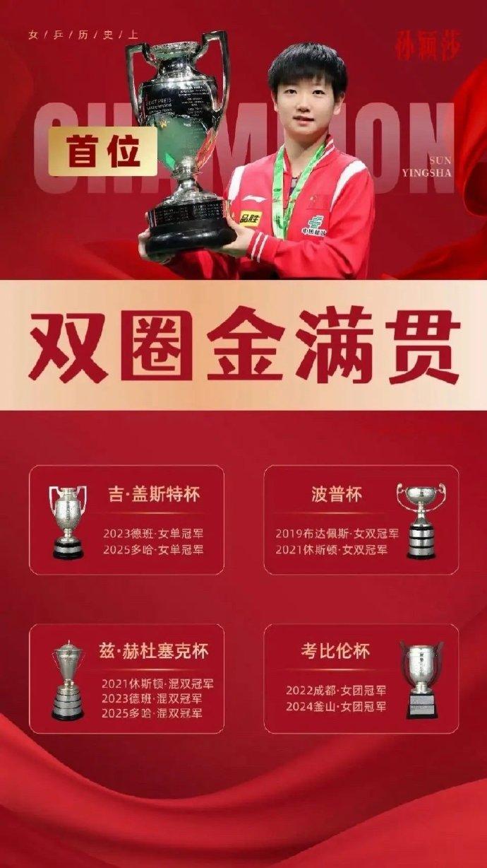 太牛了!孙颖莎解锁三大赛四金王双圈金满贯+多项历史第一人 谁能不爱孙颖莎!