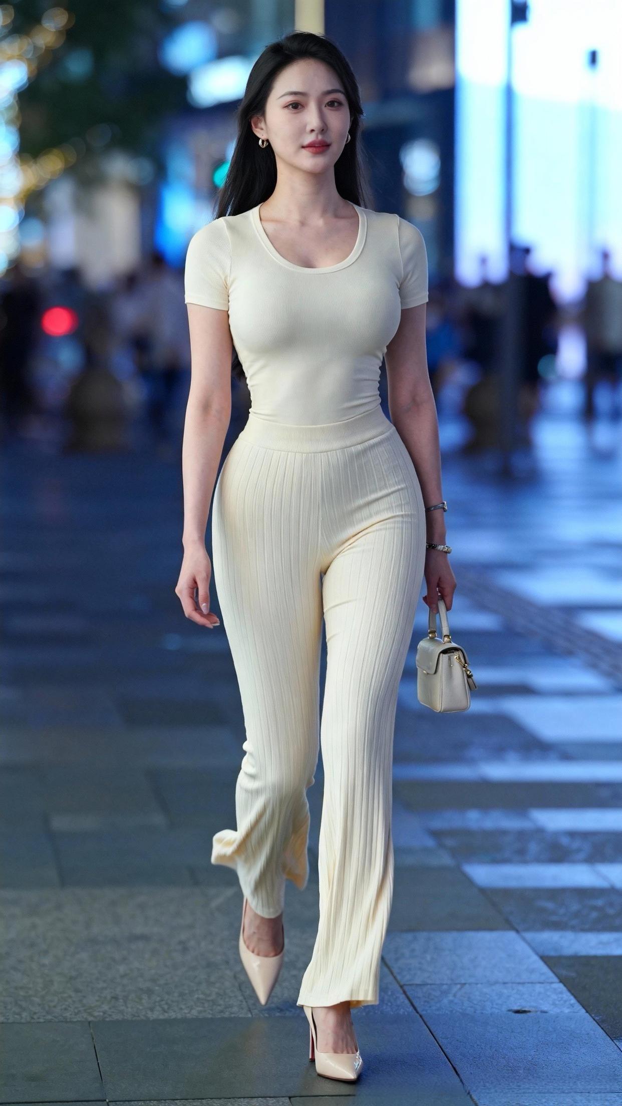 都市夜色下的优雅穿搭,米色紧身裤搭配高跟鞋,尽显时尚魅力!👠✨