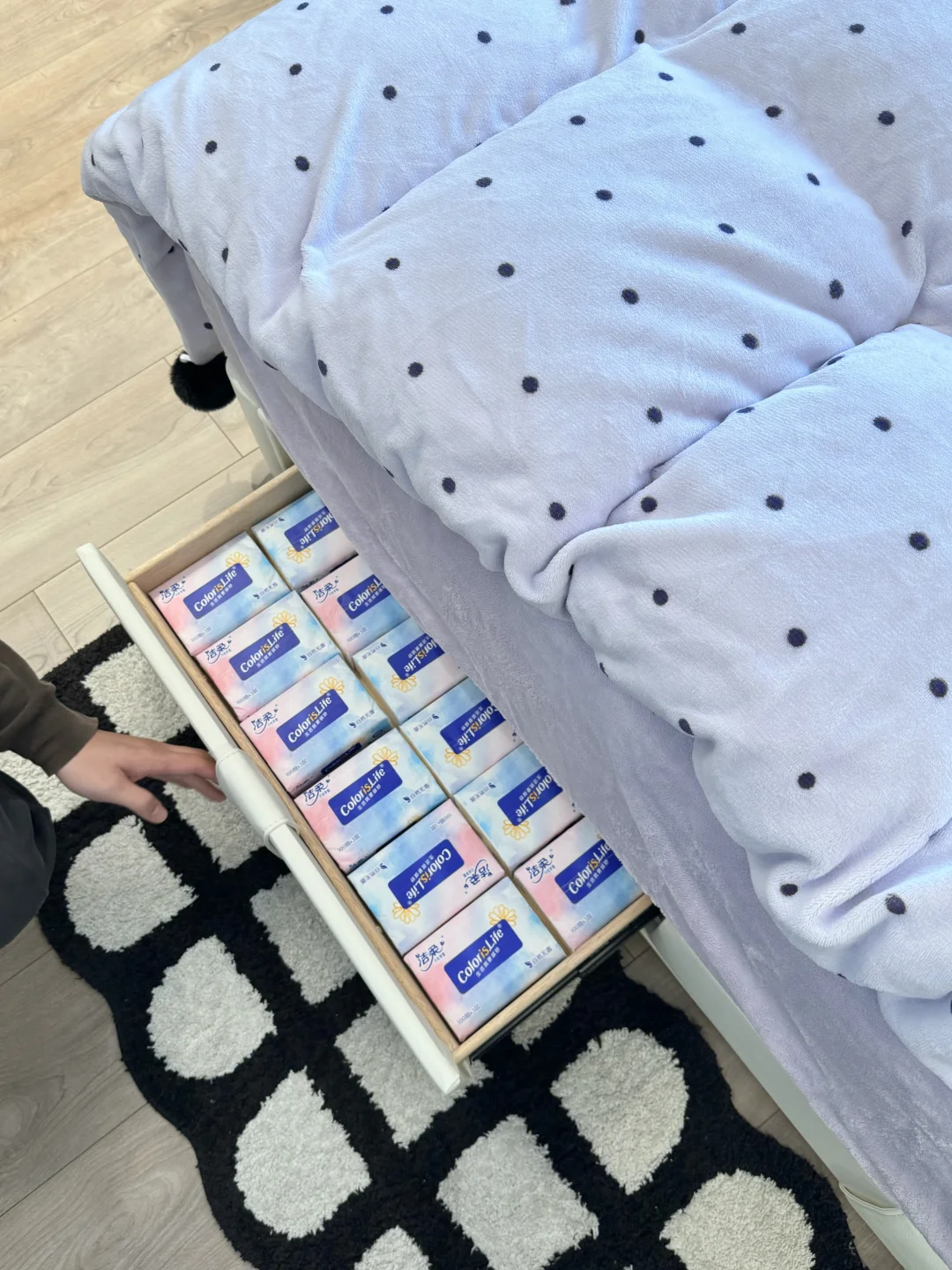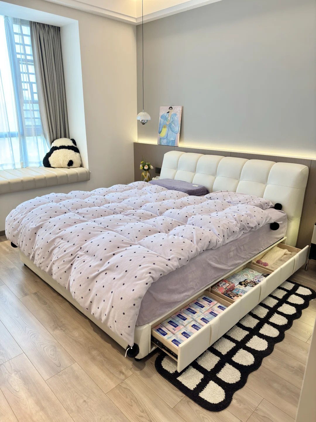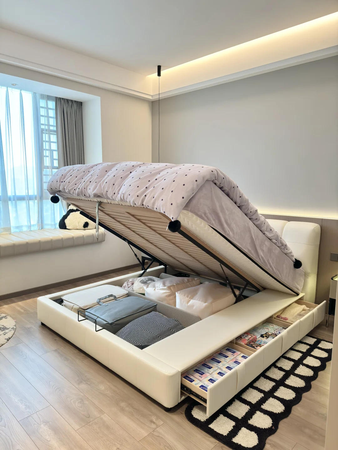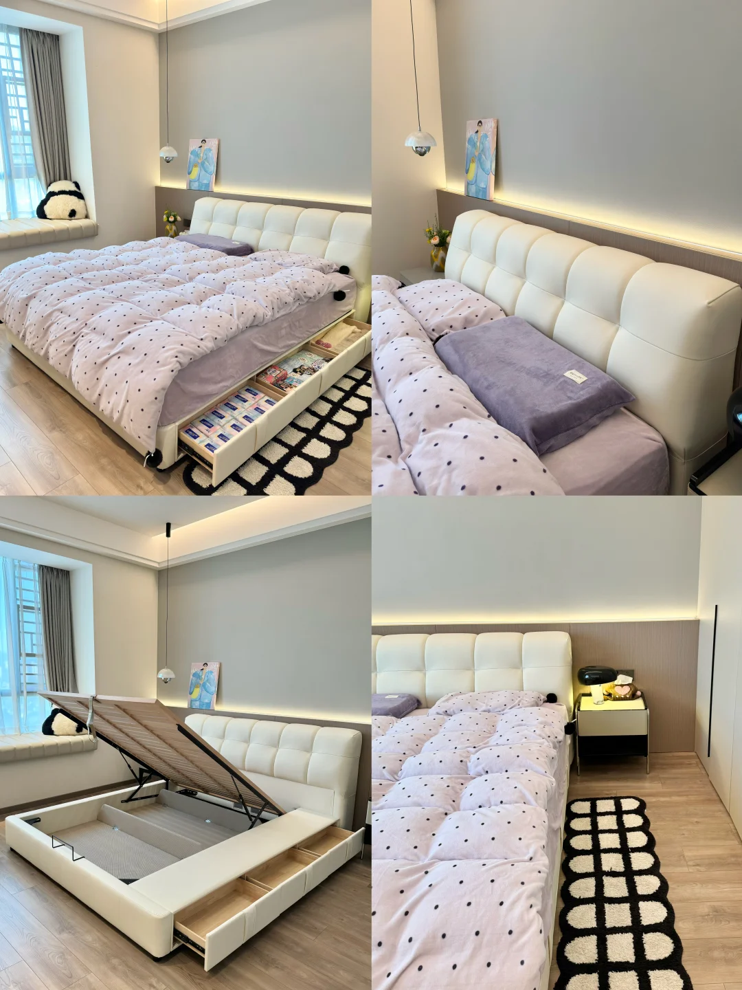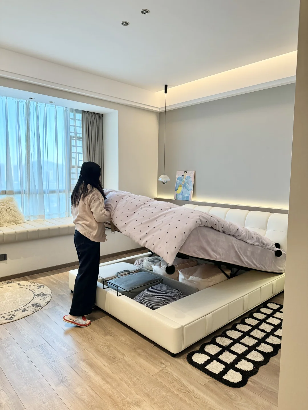 这样一张颜值和实用并存的宝藏储物床真是入手不亏😍还在为收纳烦恼的姐妹们,真的可以试试这款床哦!