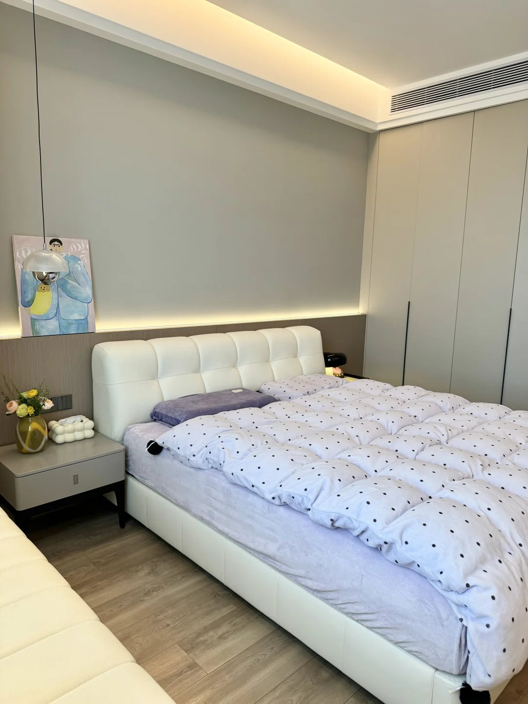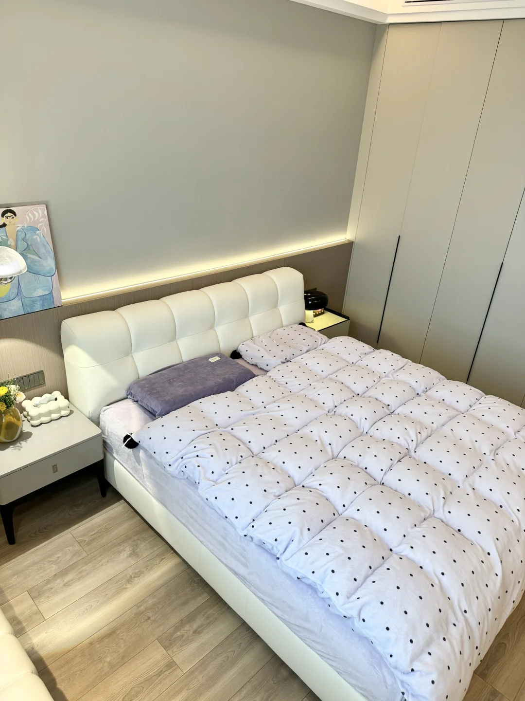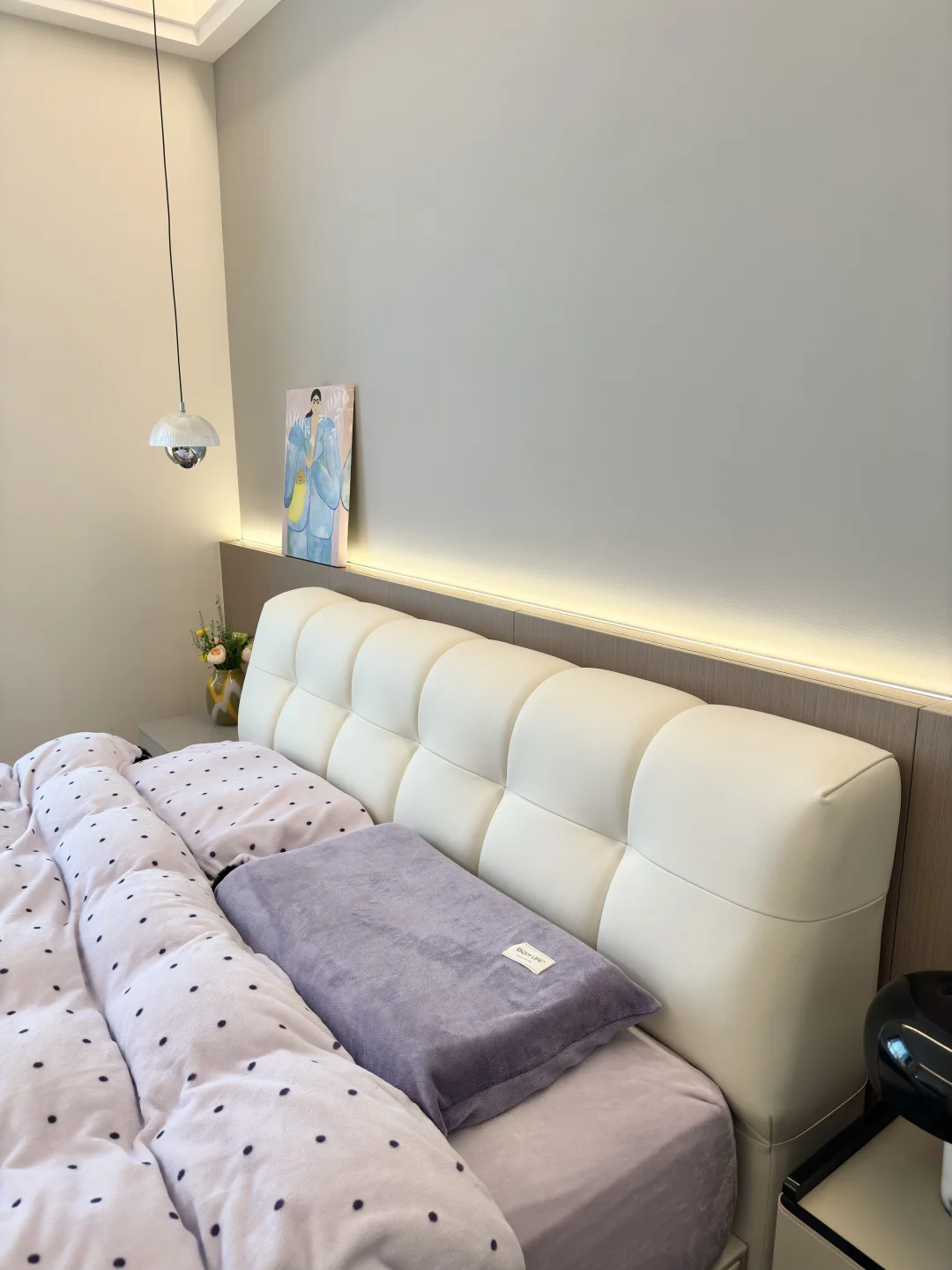 奶呼呼的真皮泡芙床头设计搭配我家卧室真的非常温柔🎀