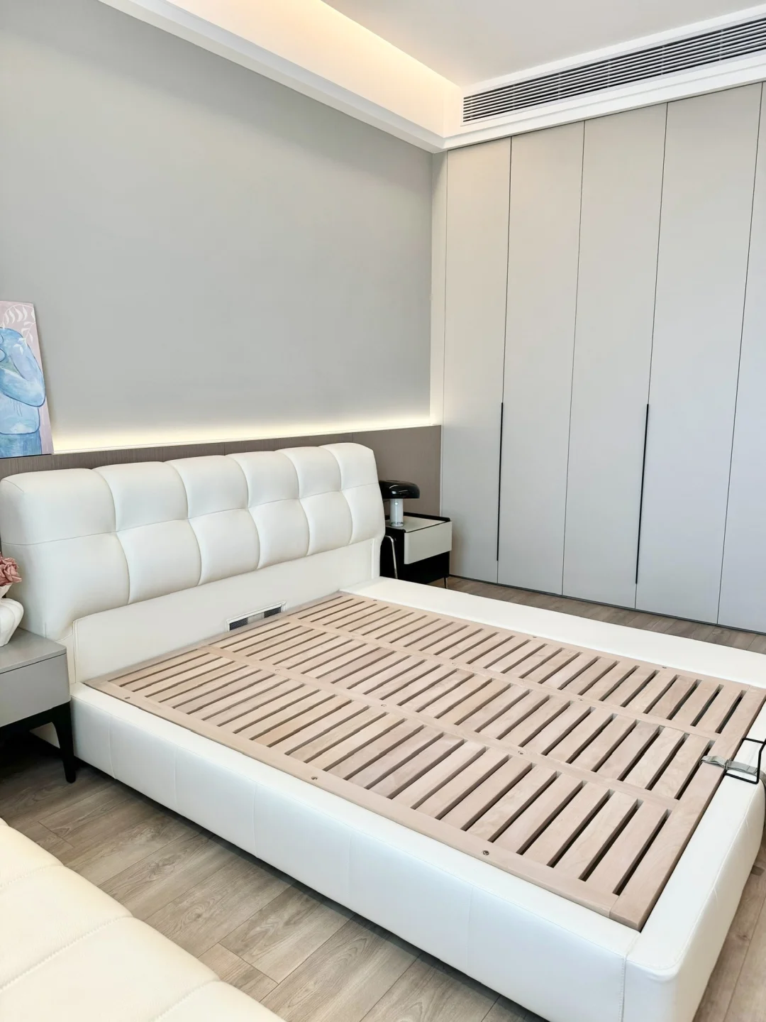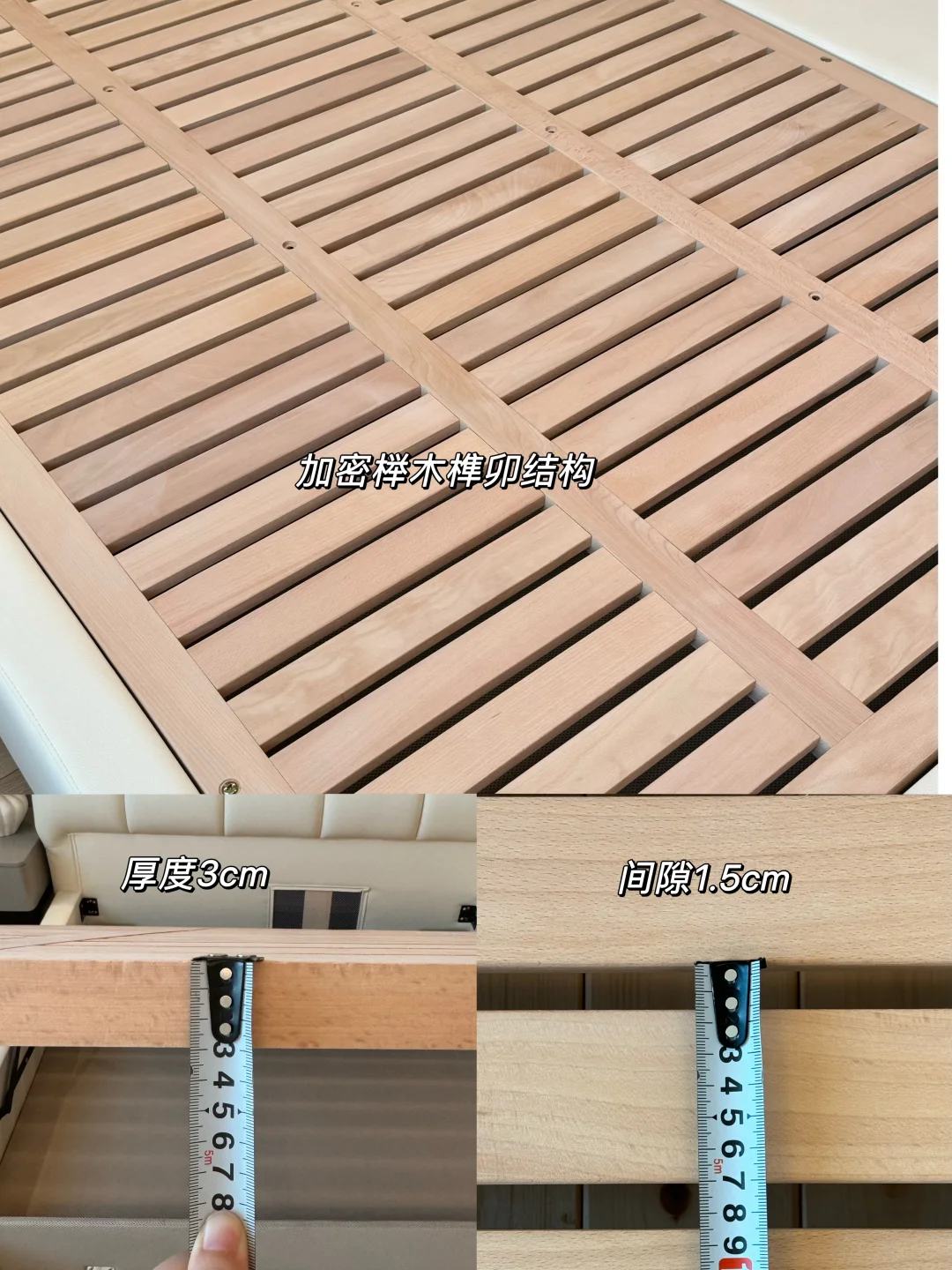 床板加密的1.5cm榉木排骨架,很稳固,睡觉翻身没有一点异响~