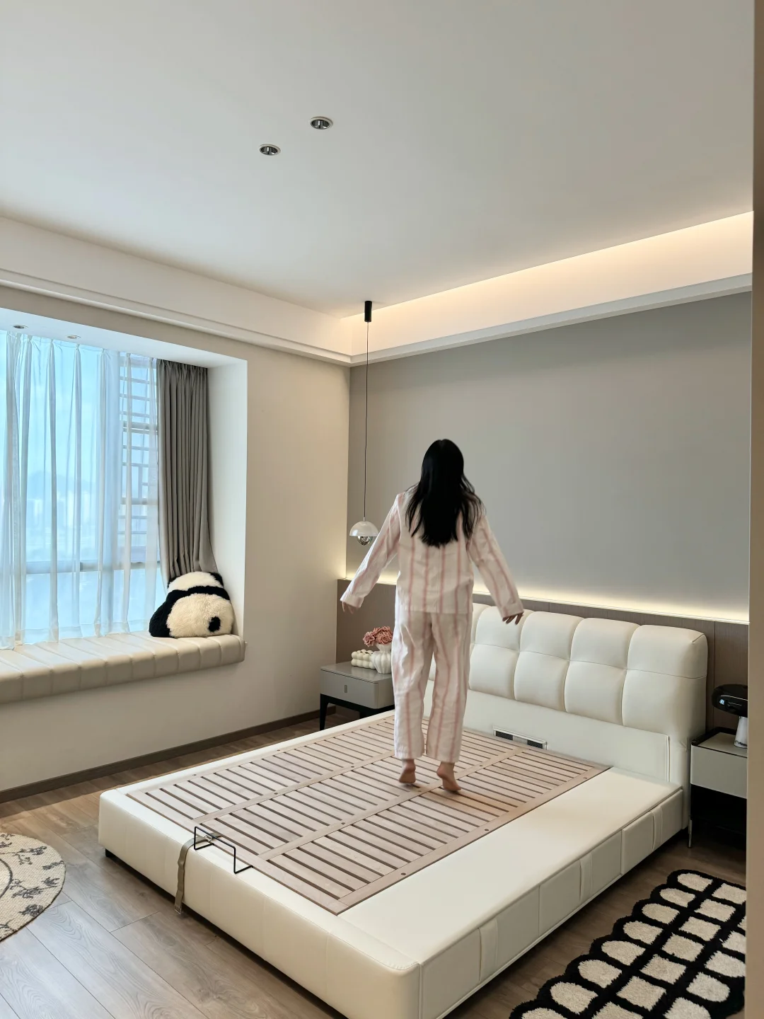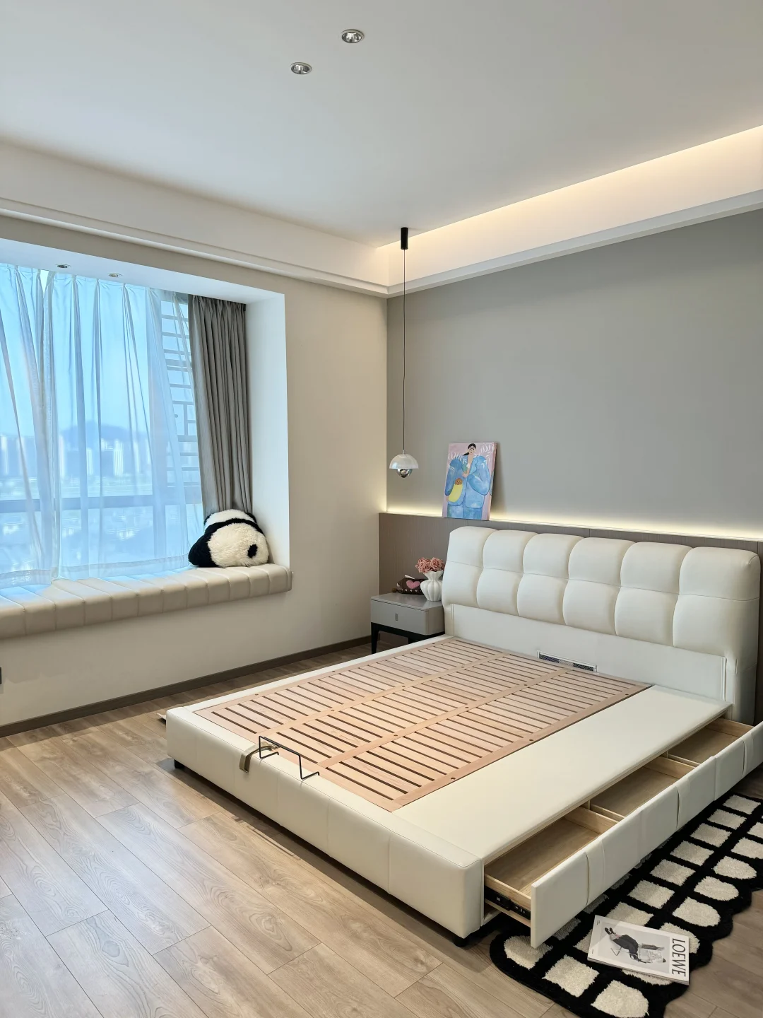 我家卧室有17平,侧面做了一排衣柜和一个小衣帽间,入住下来储物空间还是不够用!于是往储物床下手,用下来后感觉是真的很香!