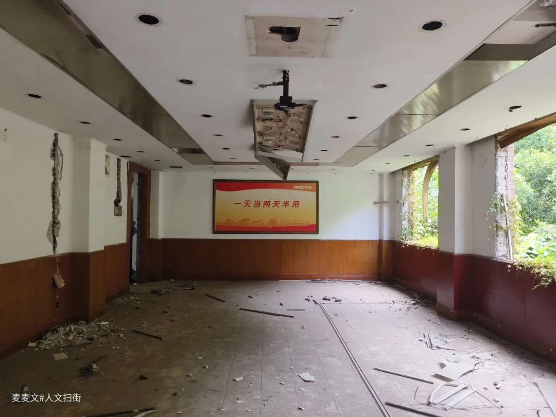 走进搬迁后的重庆潍柴发动机厂,时光仿佛在这里放慢了脚步。整个办公楼早已人去楼空,弥漫着一种陈旧与落寞的气息。办公桌和地上堆放着各种资料和遗留老物件,那是时代变迁留下的印记,也是该国营老厂辉煌往昔的余韵。