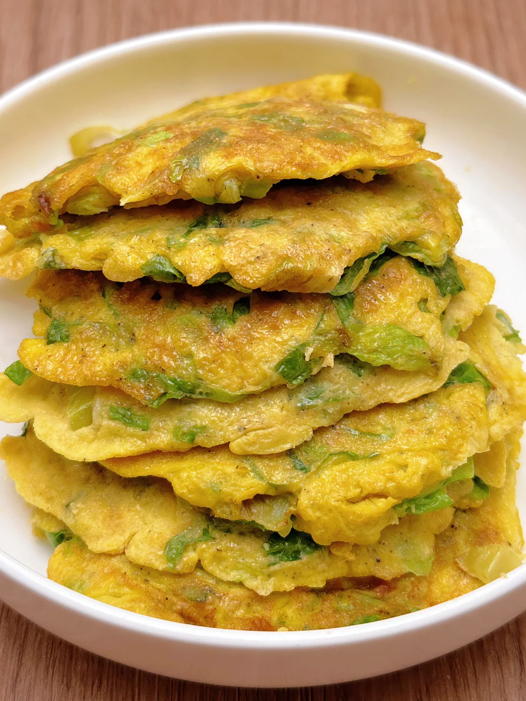 姐妹们,一定要试试这个低卡生菜鸡蛋饼真的泰香了,外焦里嫩,低卡低脂,生菜的清爽再加上浓郁的蛋香味,真的好吃又掉秤,饱腹还强,一大盘两人份也才100多大卡!一个饼才10多大卡,[暗中观察R]减脂期的姐妹们可以放心炫~ [种草R]食材:鸡蛋、生菜(2人份) [种草R]做法:如图所示~ [斜眼R]更多的减脂餐在往期笔记~