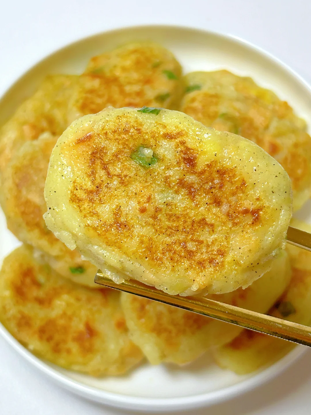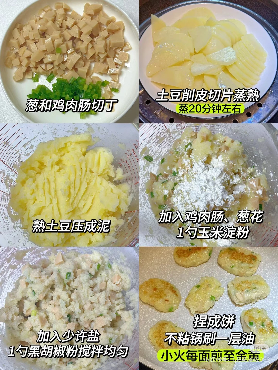 土豆这样做太香了!今天给姐妹们分享一道巨好吃的土豆火腿饼🫓一个饼才20卡,土豆饼,饱腹感强,减脂期的姐妹们可以放心炫啦,软软糯糯的巨好吃,家人们赶紧试试~ 🥗食材:2个土豆、玉米淀粉、低卡鸡肉肠、葱花(2人份) 🥘做法:如图所示(看图5⃣️)