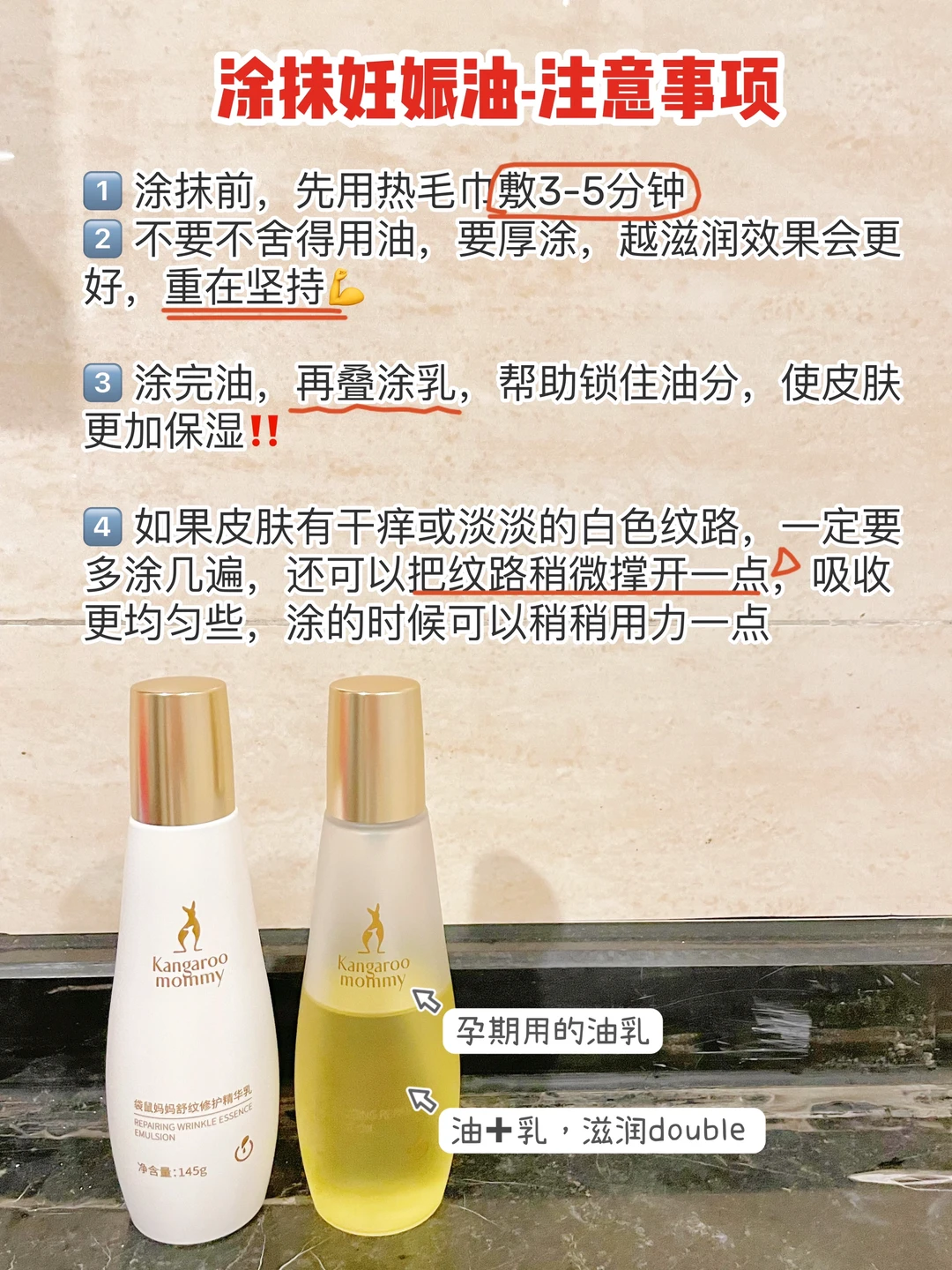 我和邻居是一起怀孕的,约定一起每天打卡涂妊娠油。结果,我没有长纹她长纹了😅,肚子倒没长,大腿臀部却很多……😫一问了才知道,她只涂抹在肚皮上,忽略了其他地方。所以今天决定出一篇文章,来提醒各位孕妈妈,正确涂抹有多重要!攻略已做好。内容较多,先收藏⭐再看!