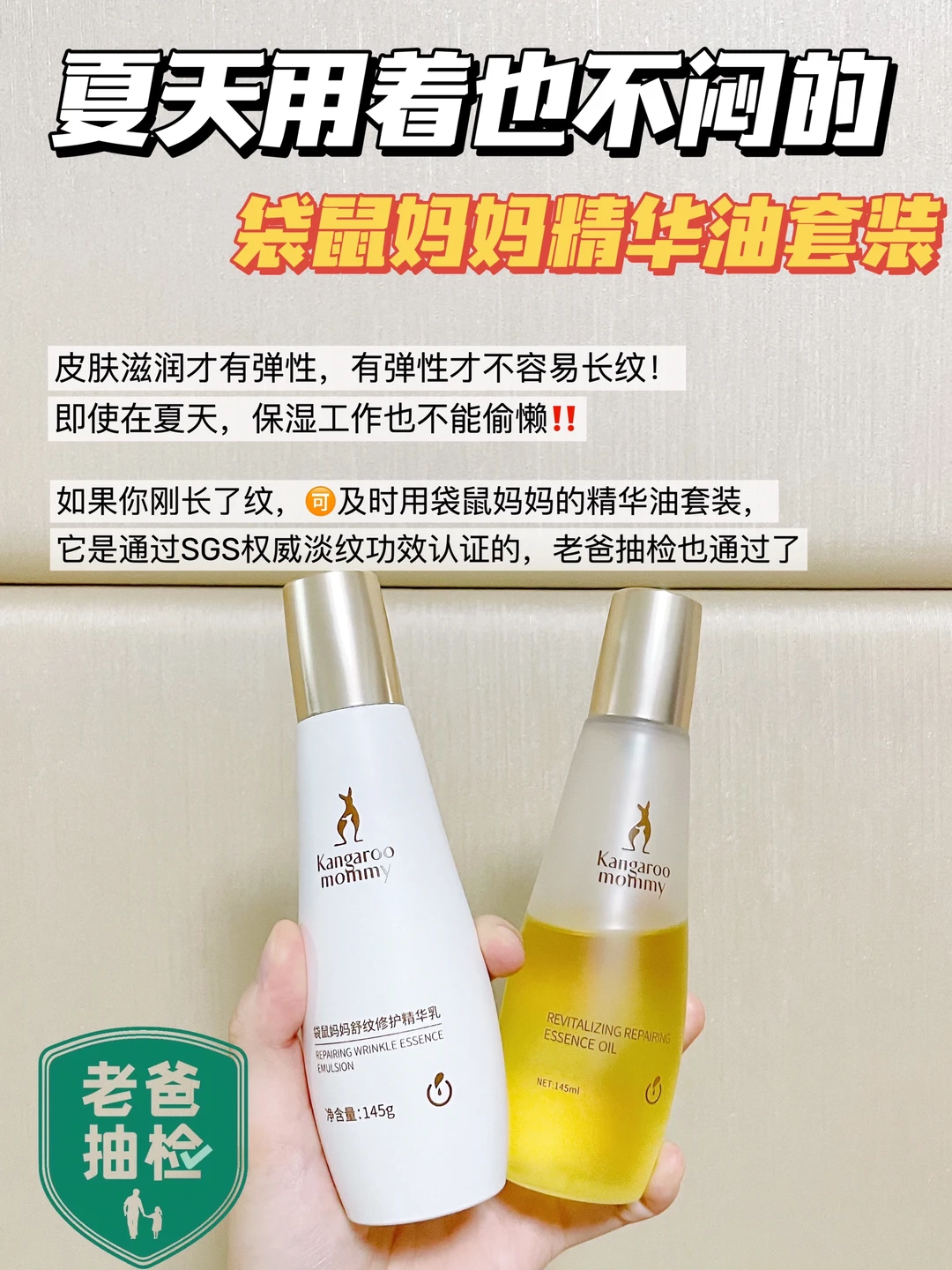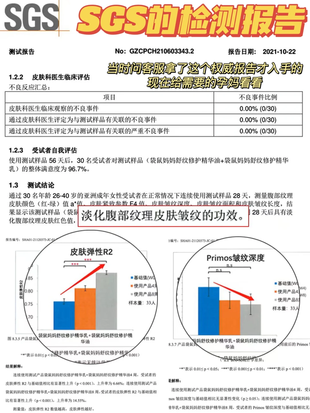 🔹里面的精华油和精华乳都是有淡纹修护功效的,不仅通过了SGS淡纹检测,还通过了老爸抽检,孕妈妈们可以闭眼入~