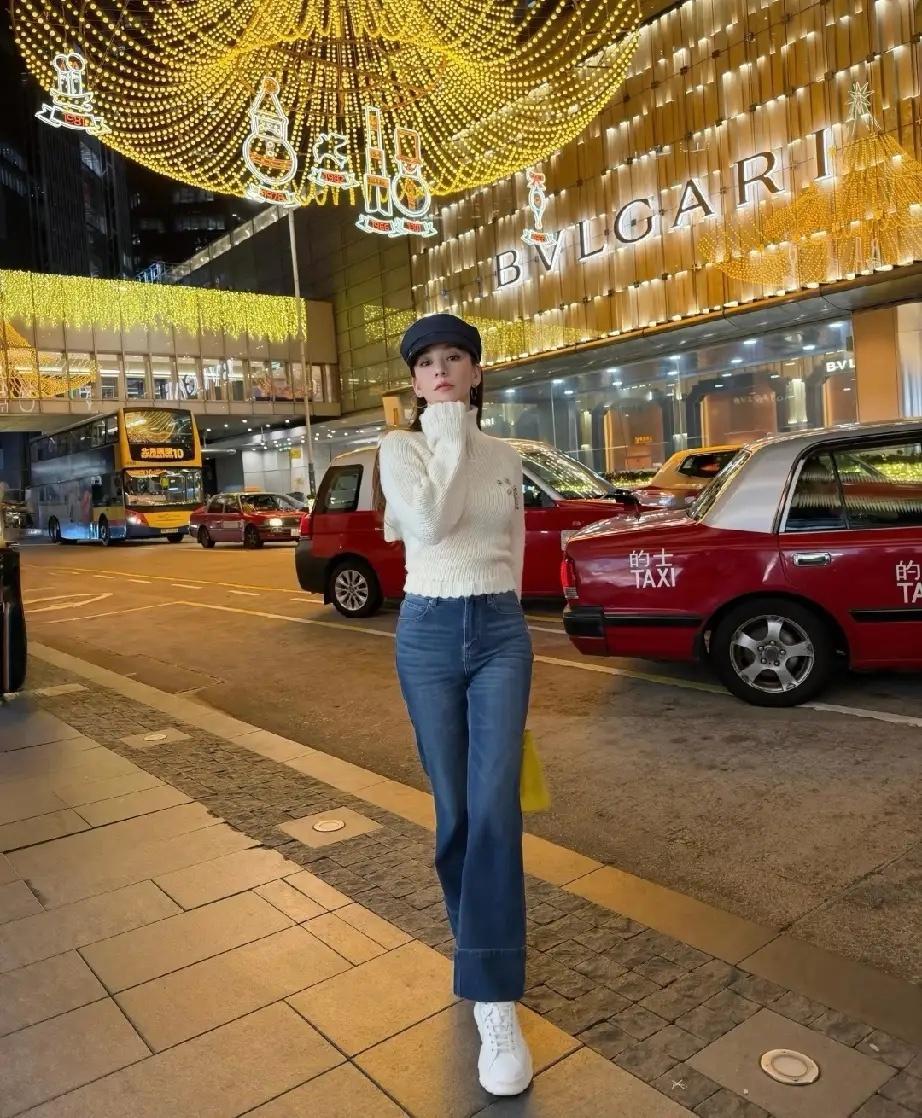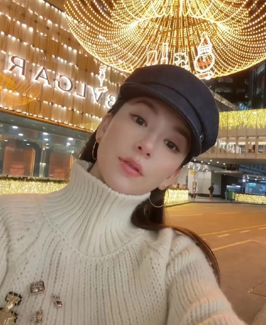 方媛穿新衣服在香港逛街!月子中心30天,回家调养15天,按老传统养够45天,才敢正式出门玩,化淡妆好精致。