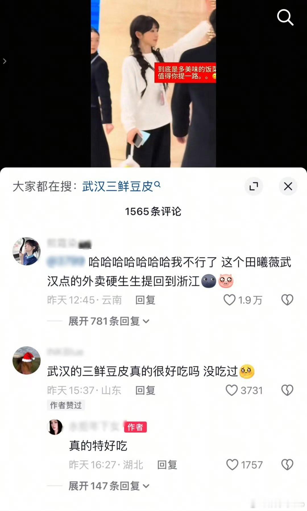 终于知道田曦薇领了一路的外卖是什么了,原来是武汉的三鲜豆皮,我们小田也是三鲜豆皮梦女来着