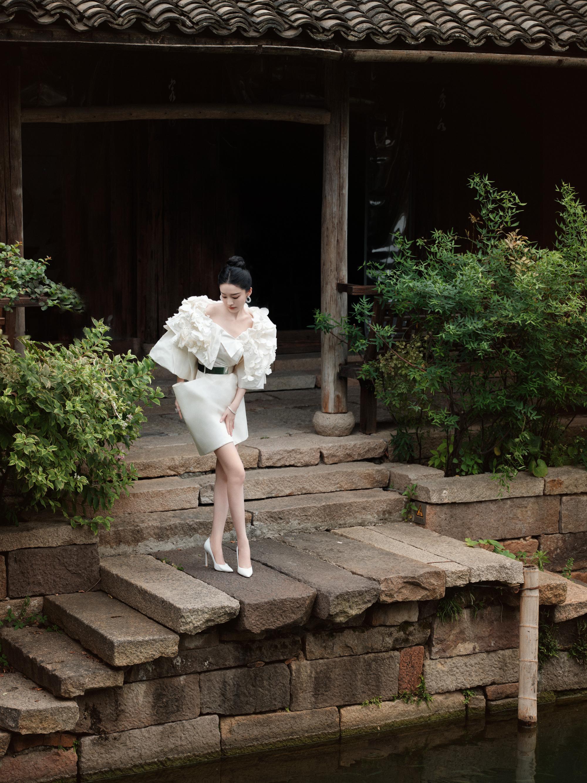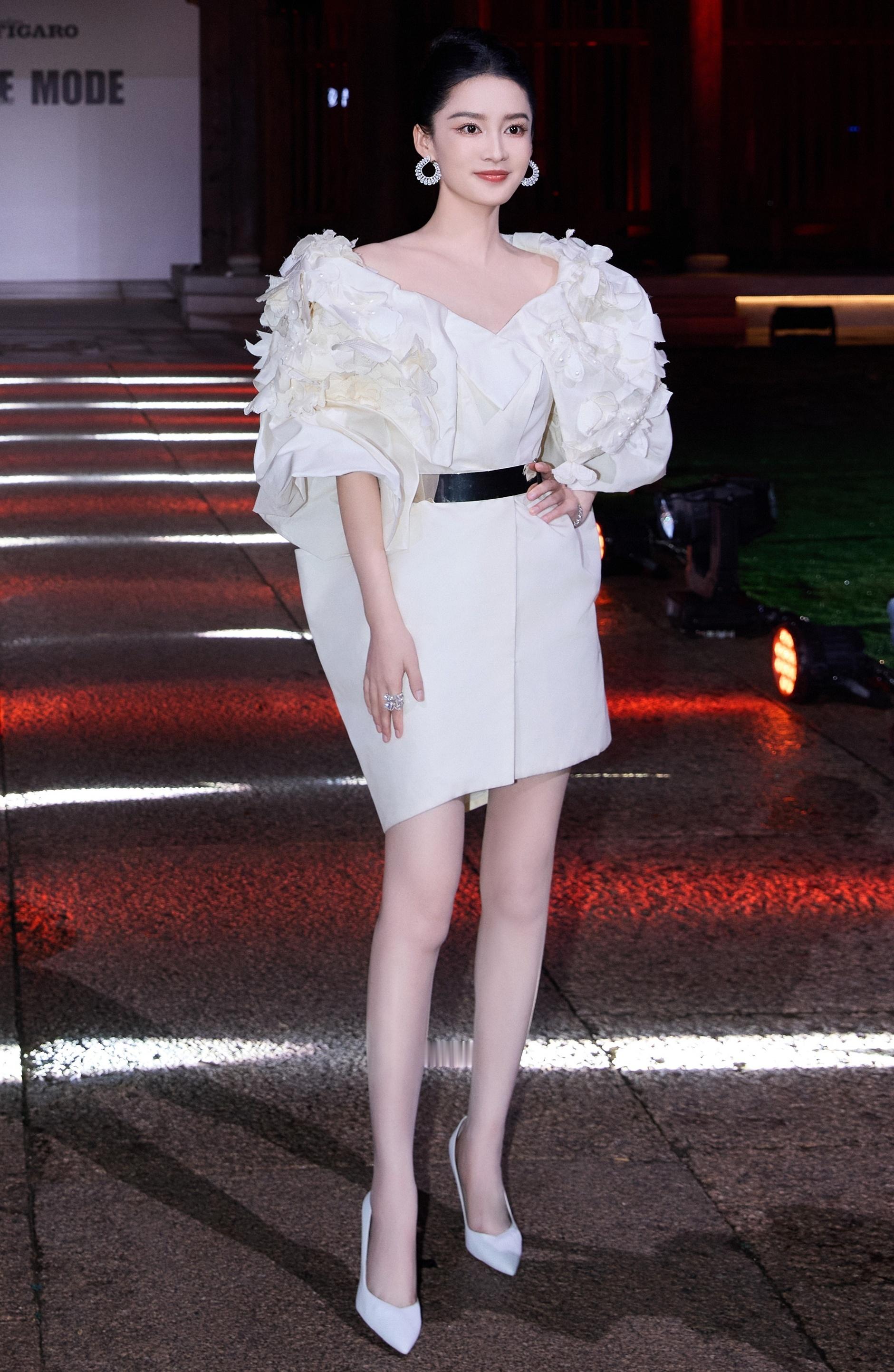 李沁,白裙高跟穿搭,三分甜美七分优雅。李沁