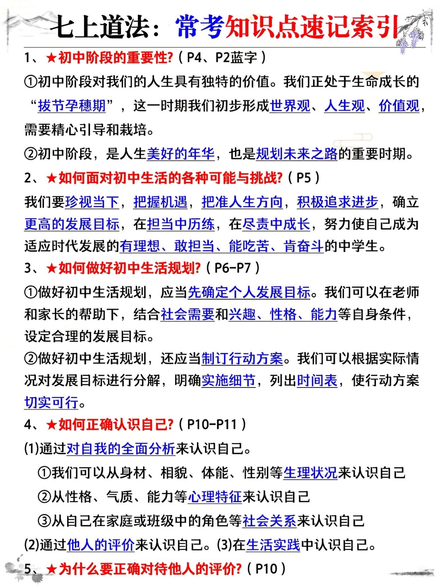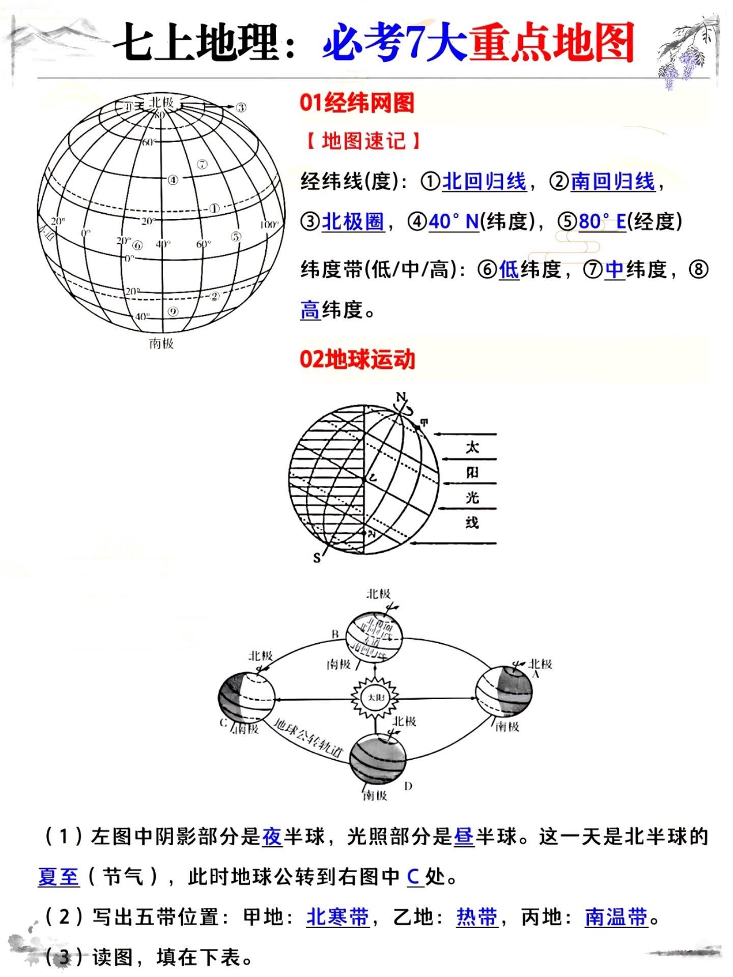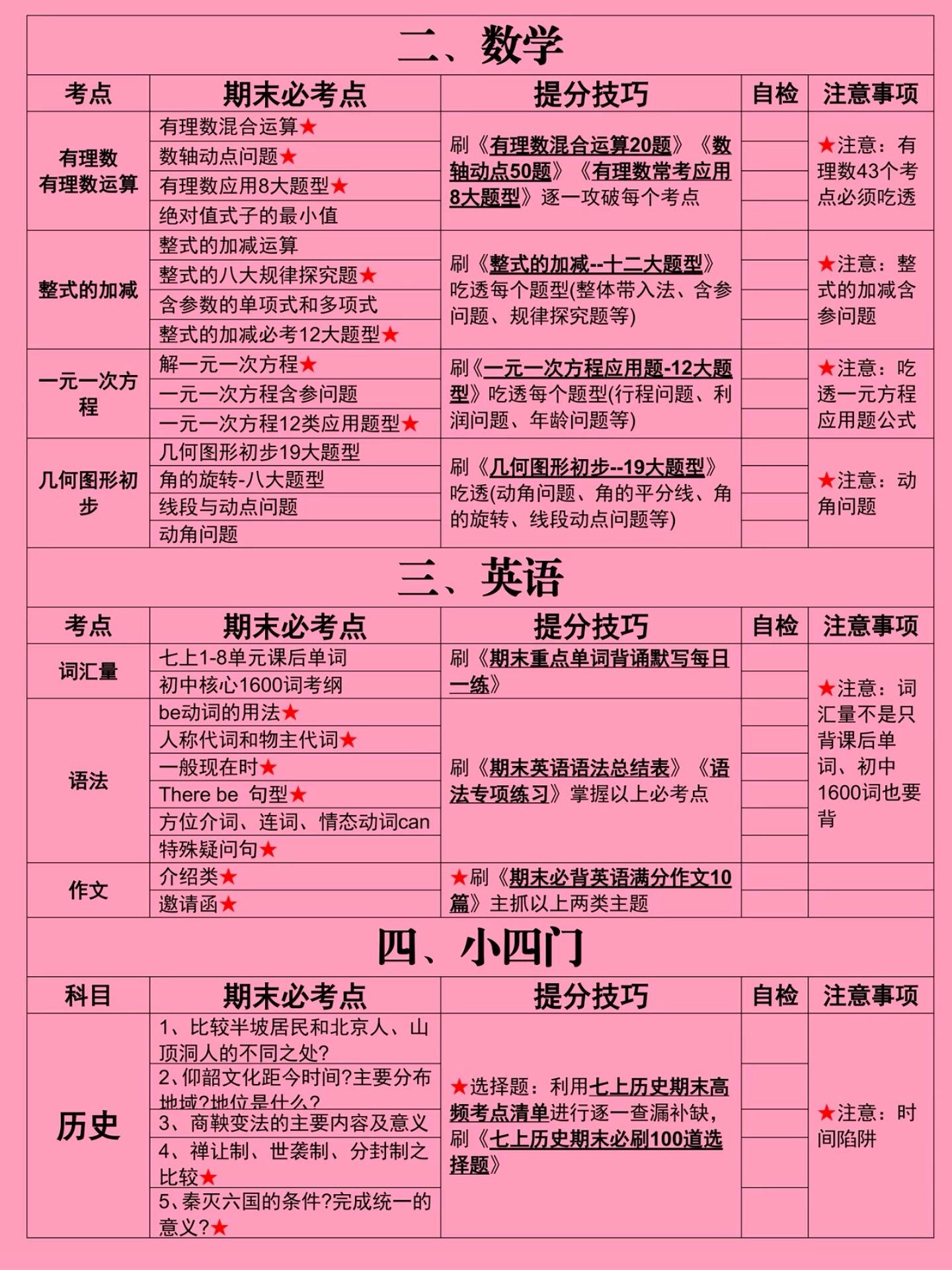 七年级上册期末总复习必背重点知识汇总。七年级上册各科必背重点,老师给大...