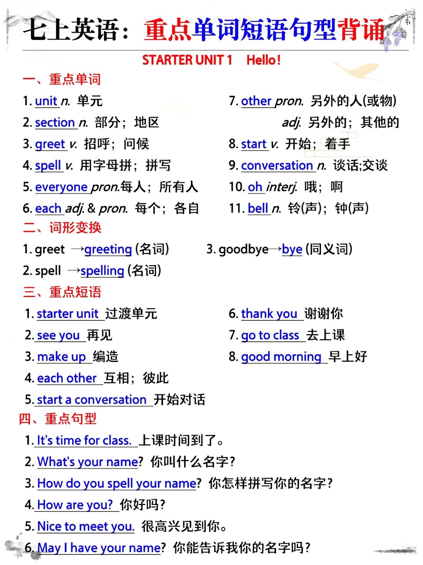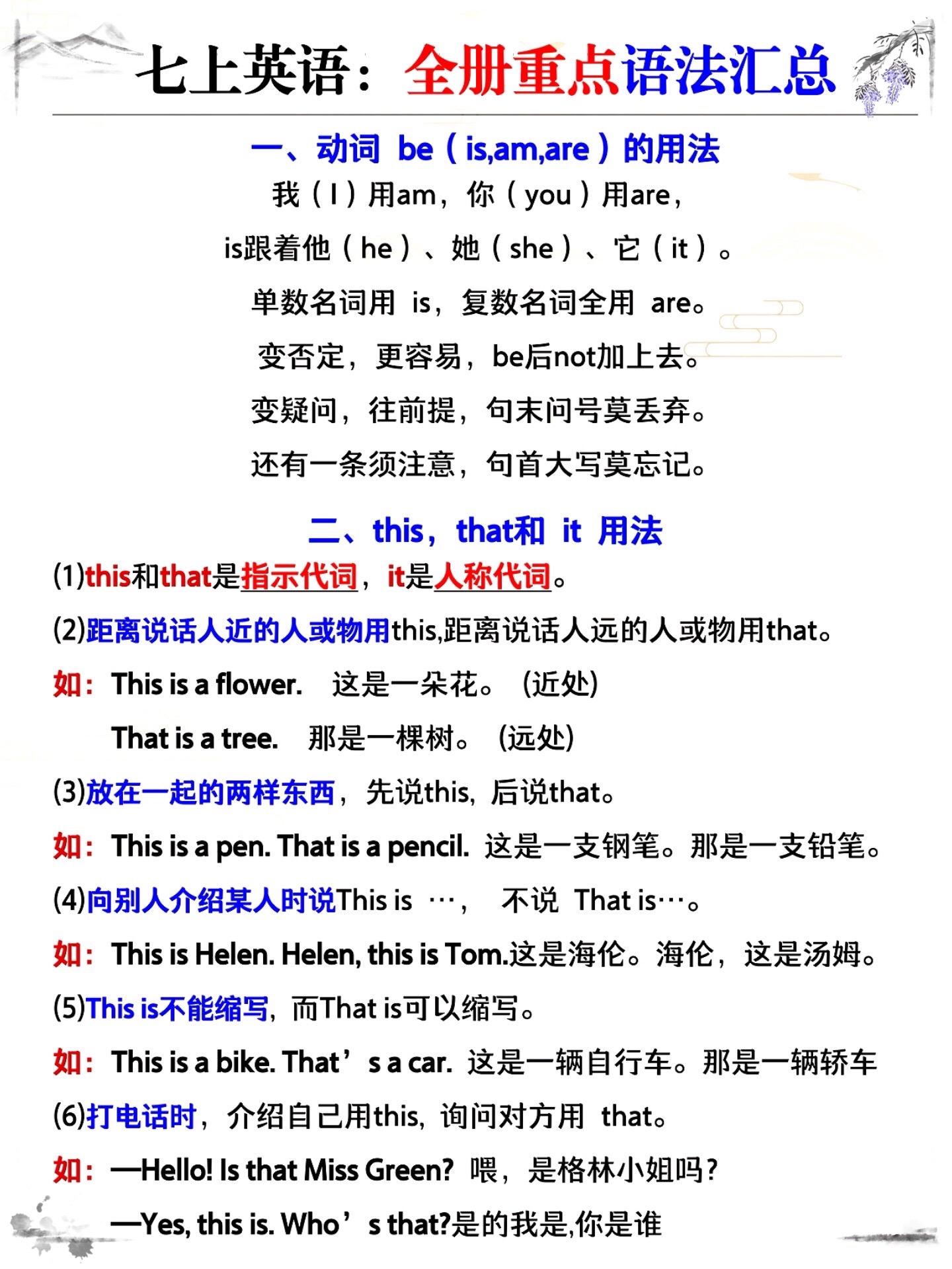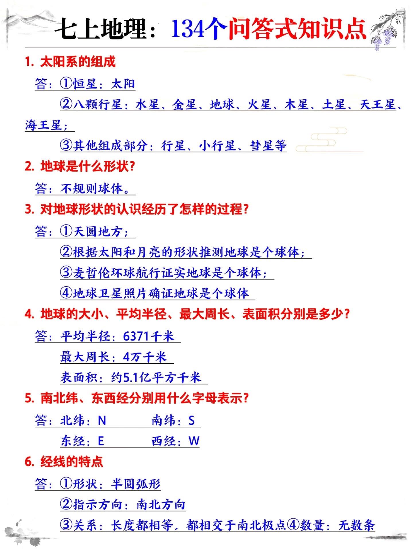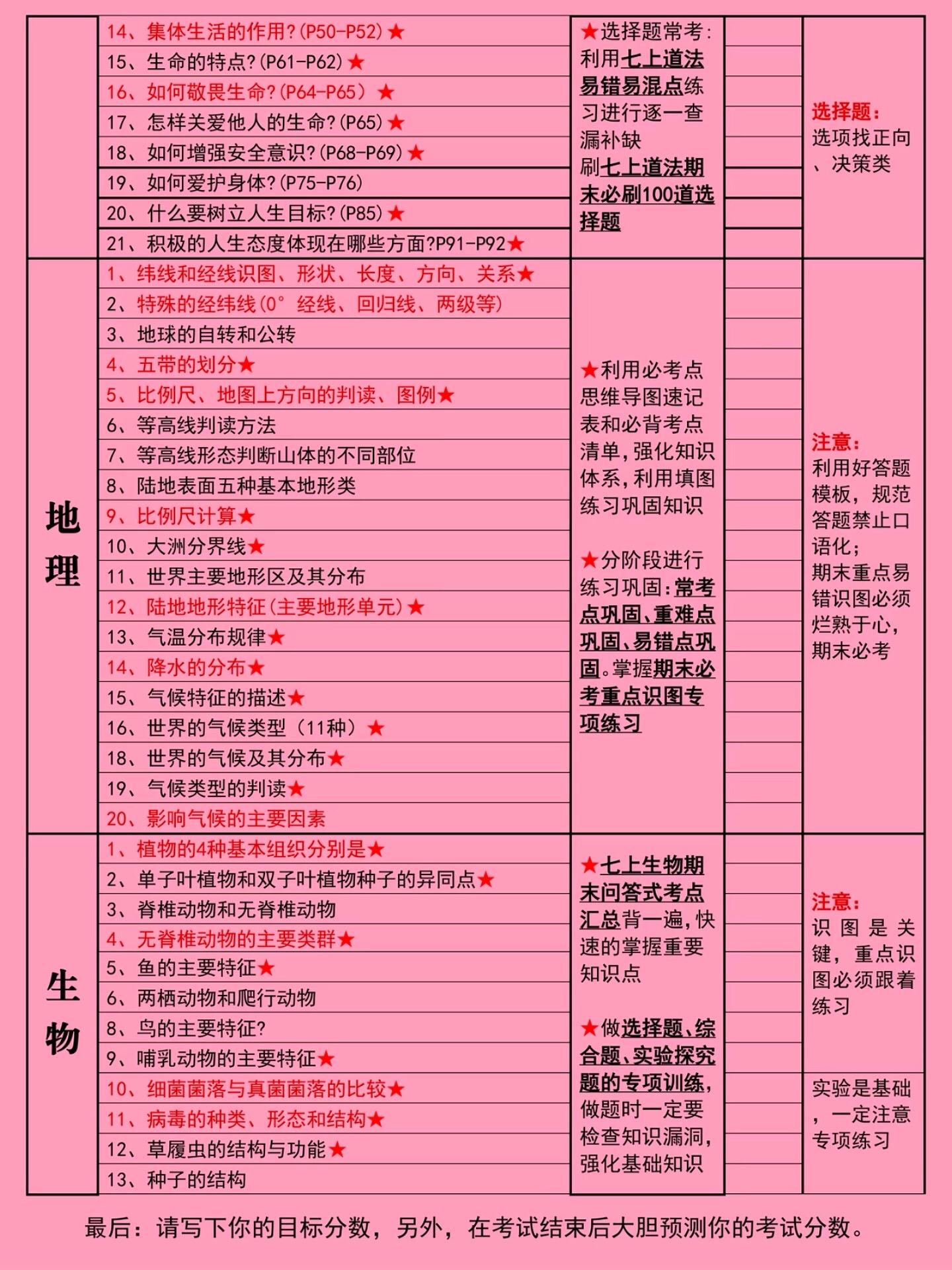 七年级上册期末总复习必背重点知识汇总。七年级上册各科必背重点,老师给大...