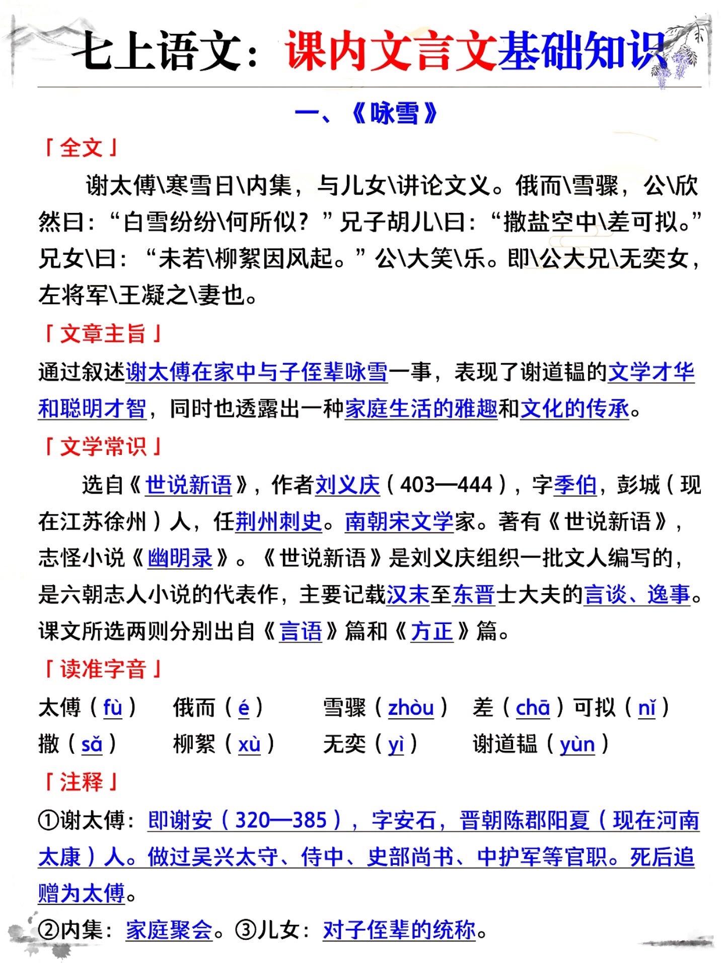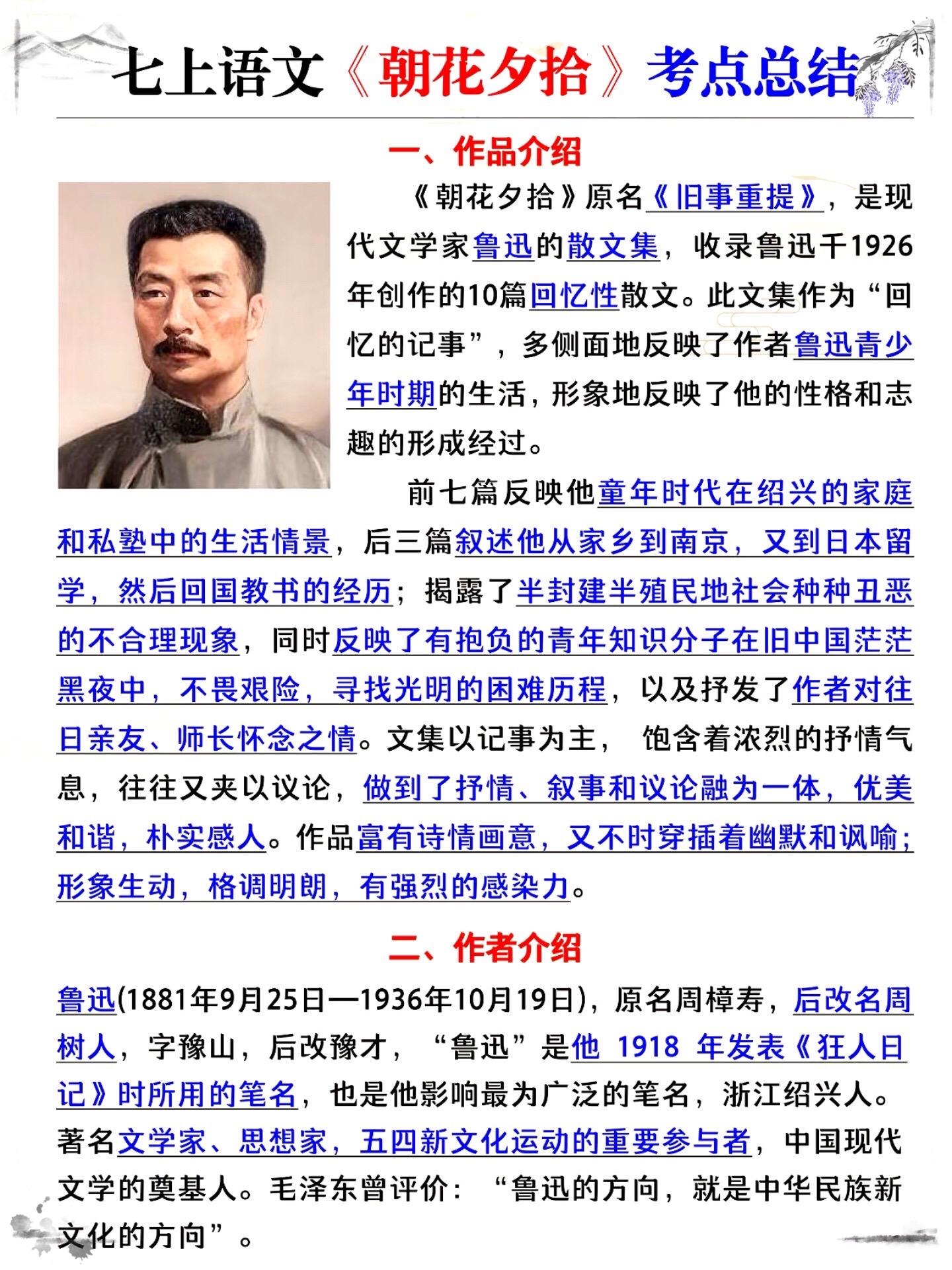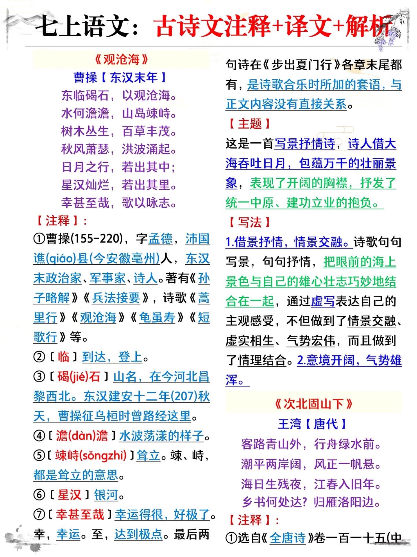 七年级上册期末考试全册复习重点必背常考。七年级上册语文知识点,老师给大...