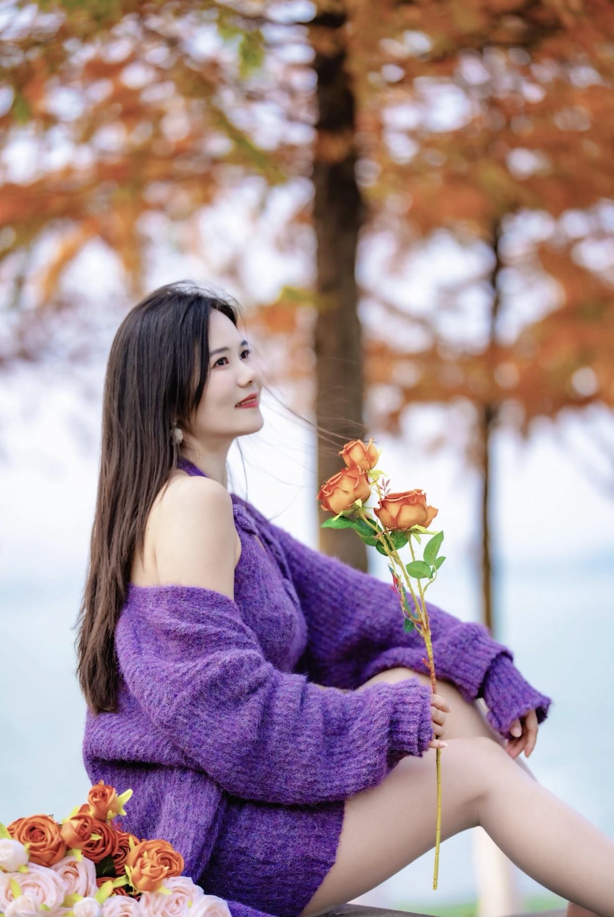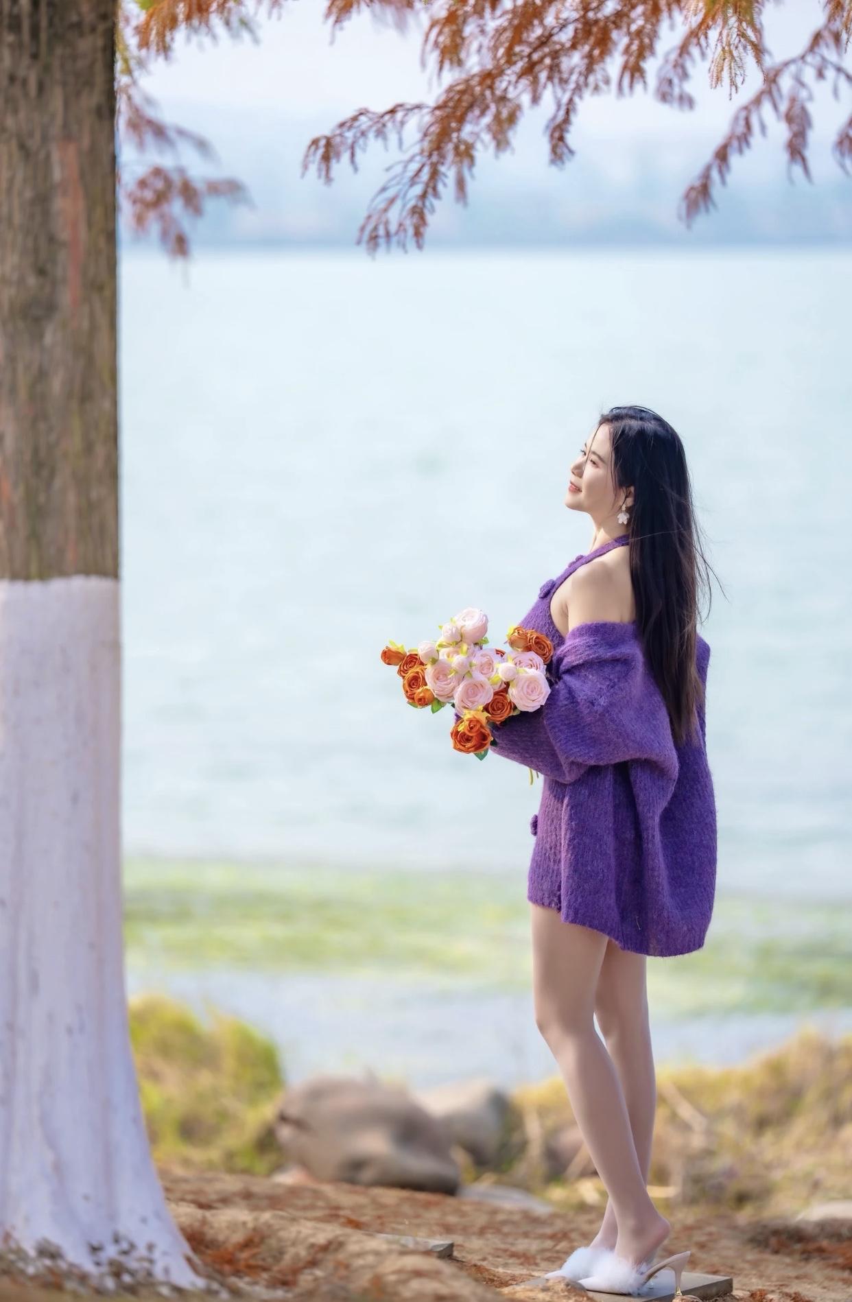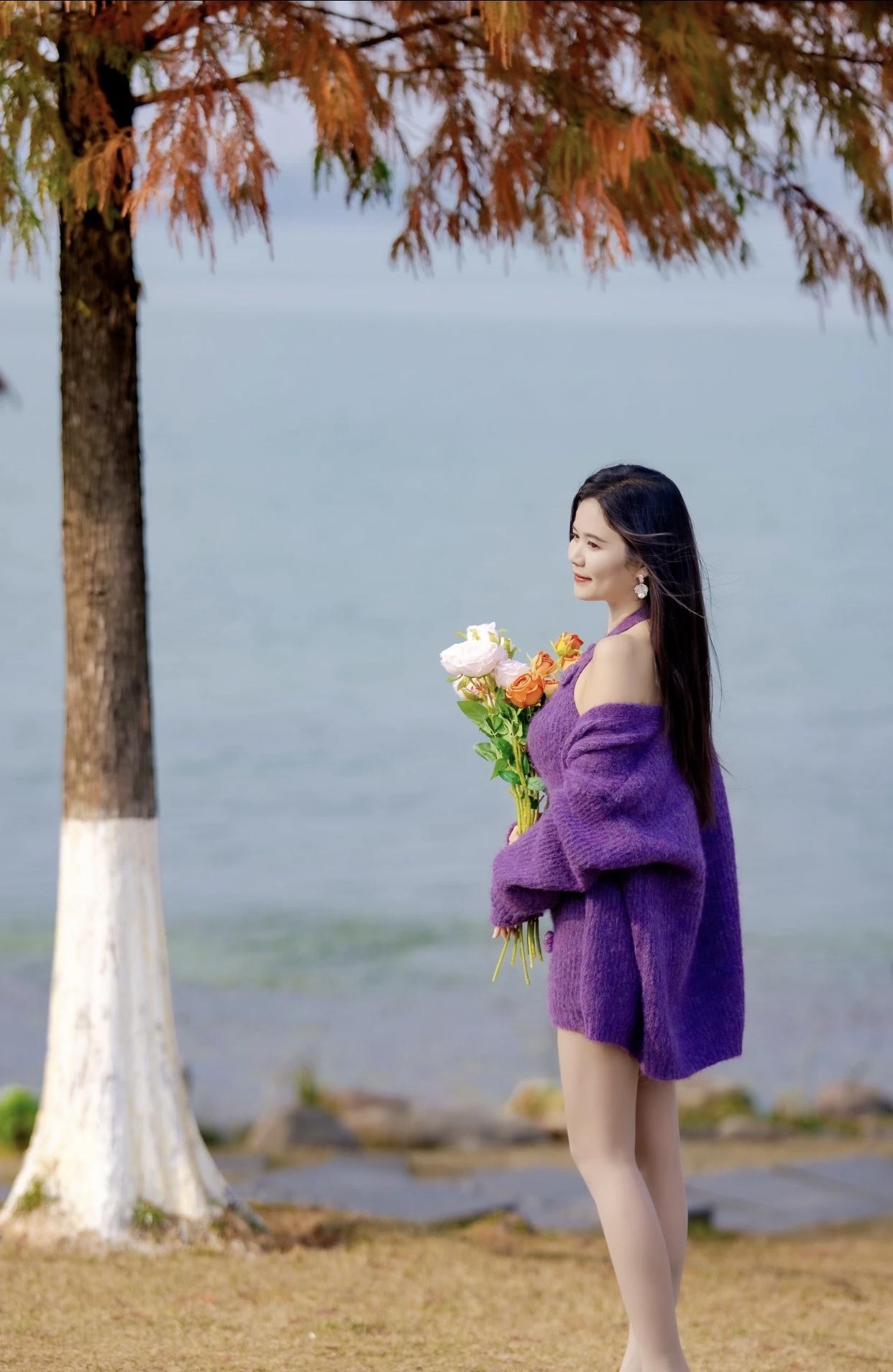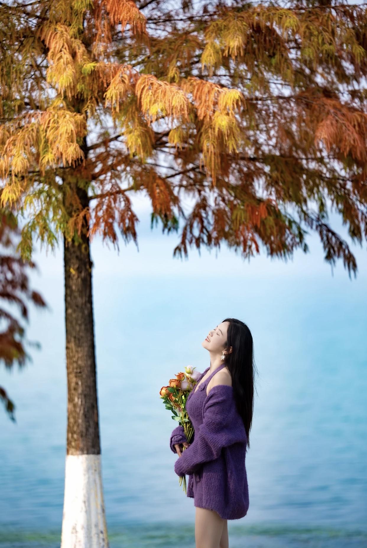 你见过最性感的女生有多性感秋日湖畔,少女轻倚树旁,手持鲜花,静享美好时光。