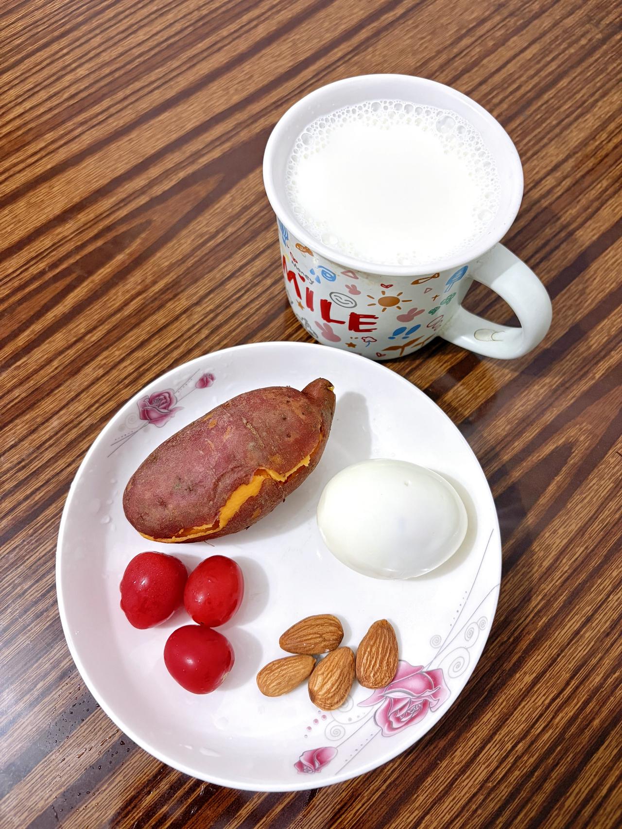 泪水打湿我的减脂餐,发誓瘦到103斤 今日减脂早餐:红薯+鸡蛋+坚果+牛奶+番茄 体重管理 体重管理自律减脂健康餐