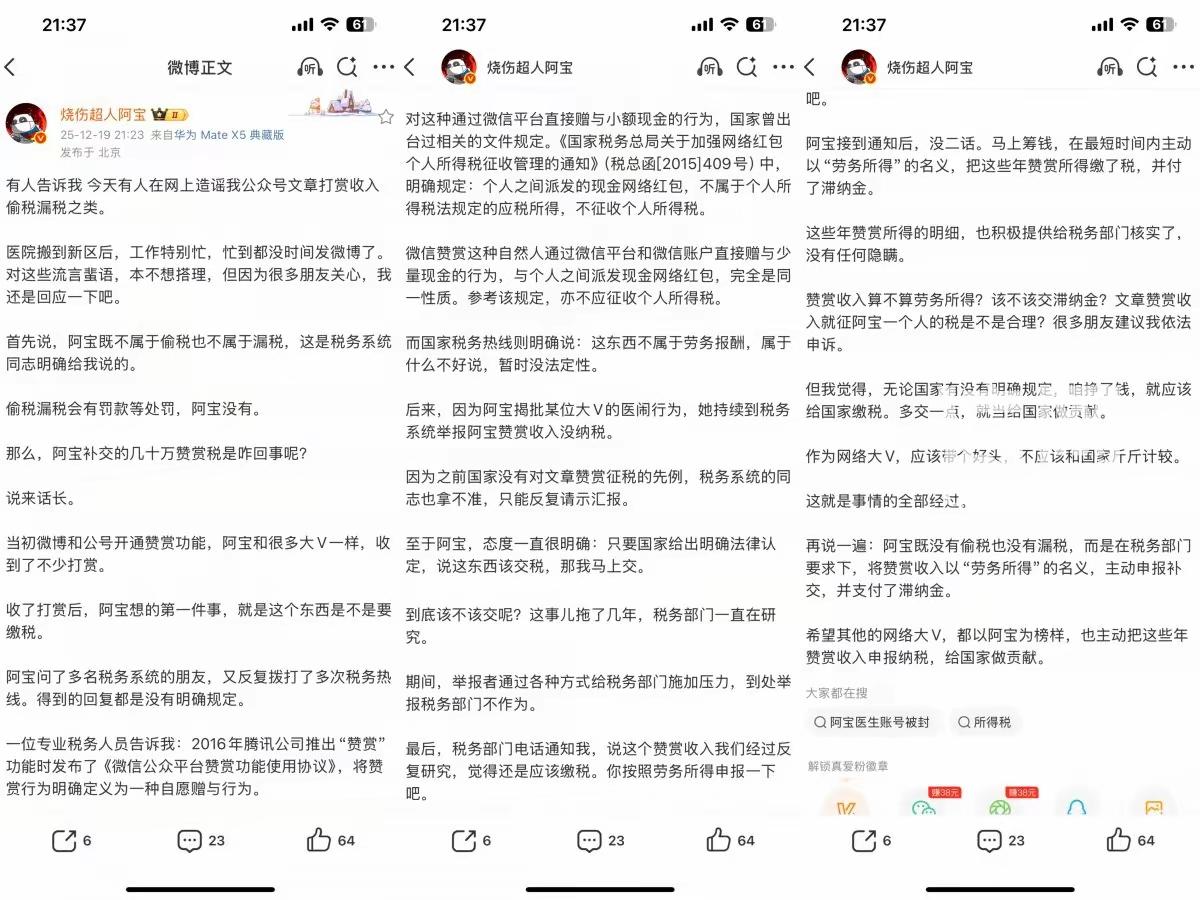 女网红医生举报男网红医生税务问题,男网红医生被税务局查处补缴84万元税款,其本