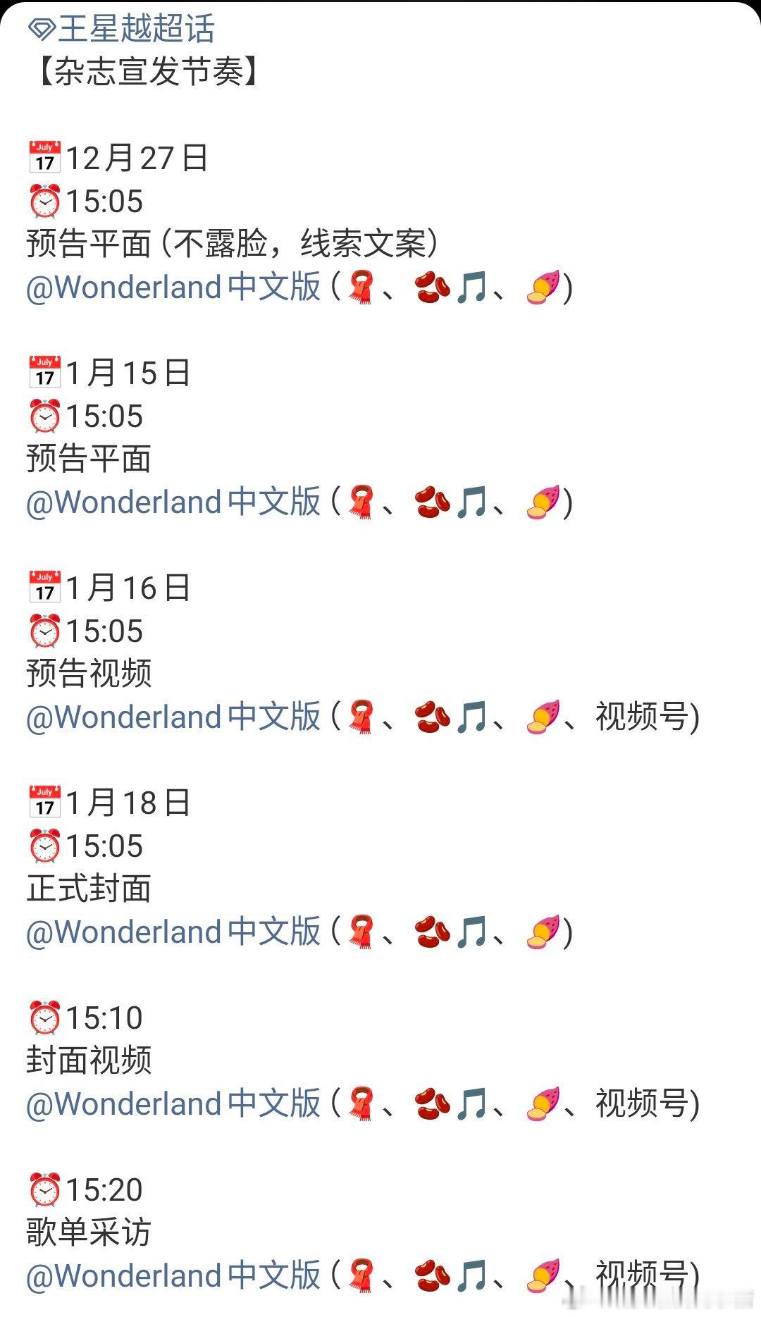 王星越新杂志Wonderland开年刊预告,还有好多物料啊