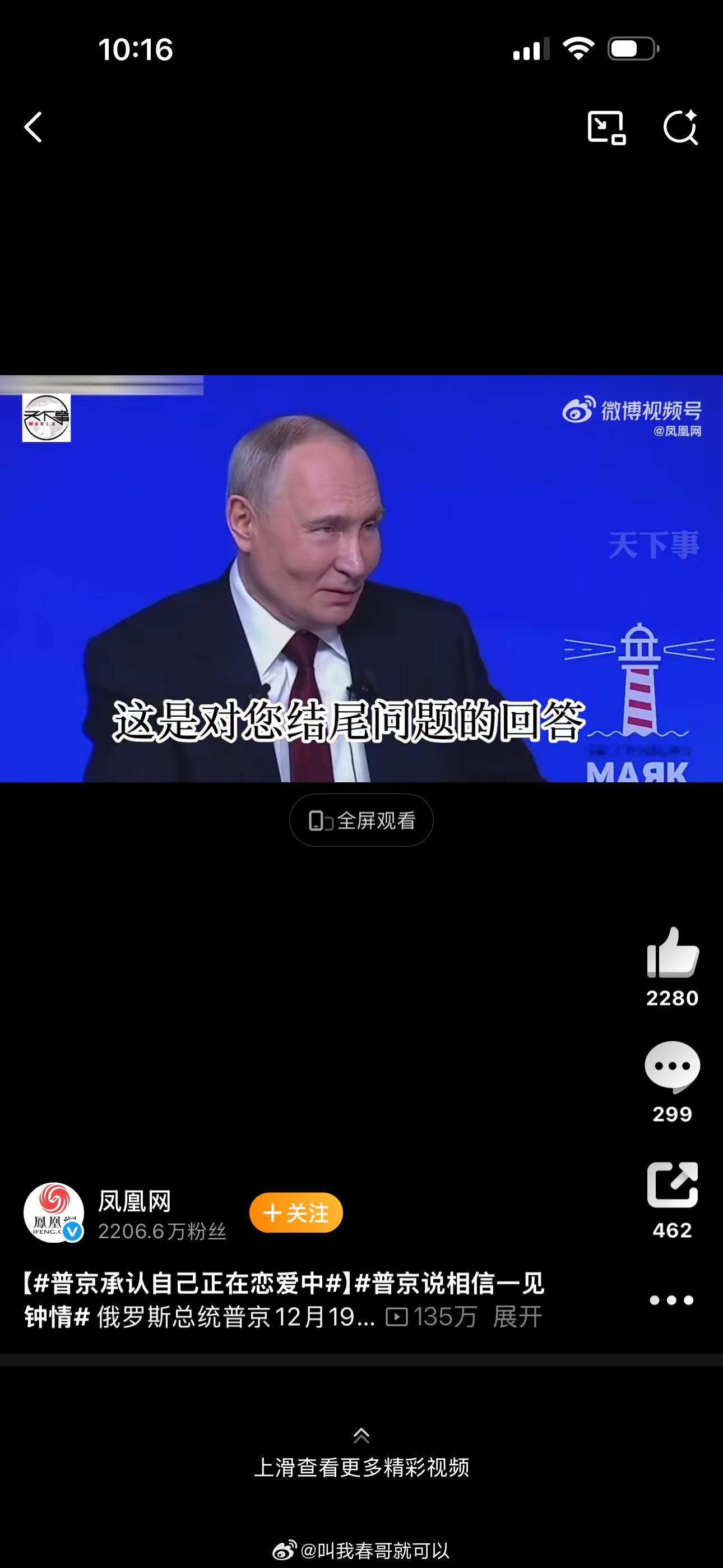 普京承认自己正在恋爱中我又相信爱情了……看到普老师这幸福的眼神