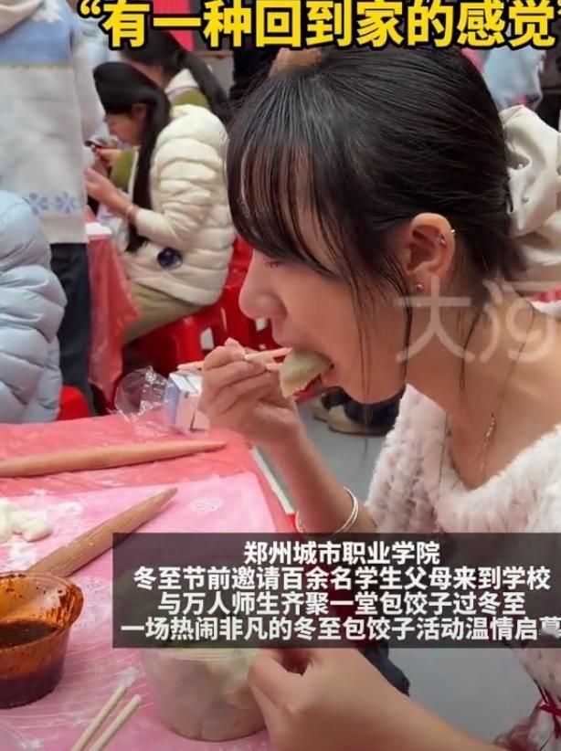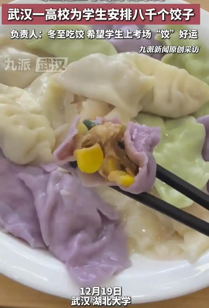 给大学生过冬至包饺子 为湖北大学郑州职院点赞 今天是12月20日冬至的前一天。早上刷到两条新闻让我很感动。 一条是湖北大学在考研日也就是昨天,准备了8000只饺子,将数百名学子送上考研的考场。 上车的饺子下车的面,这寓意让家长放心,让学子开心同时为他们预祝了冬至的到来。 另一条消息是郑州职业技术学院,连续两年组织万人包饺子活动。活动中,师生共同参与,还邀请了数百位家长共同参加,一块包饺子,一块吃饺子,共庆冬至。 被采访的女生边吃着饺子边感动着哭诉: (学校)让我有了家的感觉! 两条新闻温暖了无数大学学子抚慰了大学家长的心。特别希望这样的举措能够被更多的学校效仿。