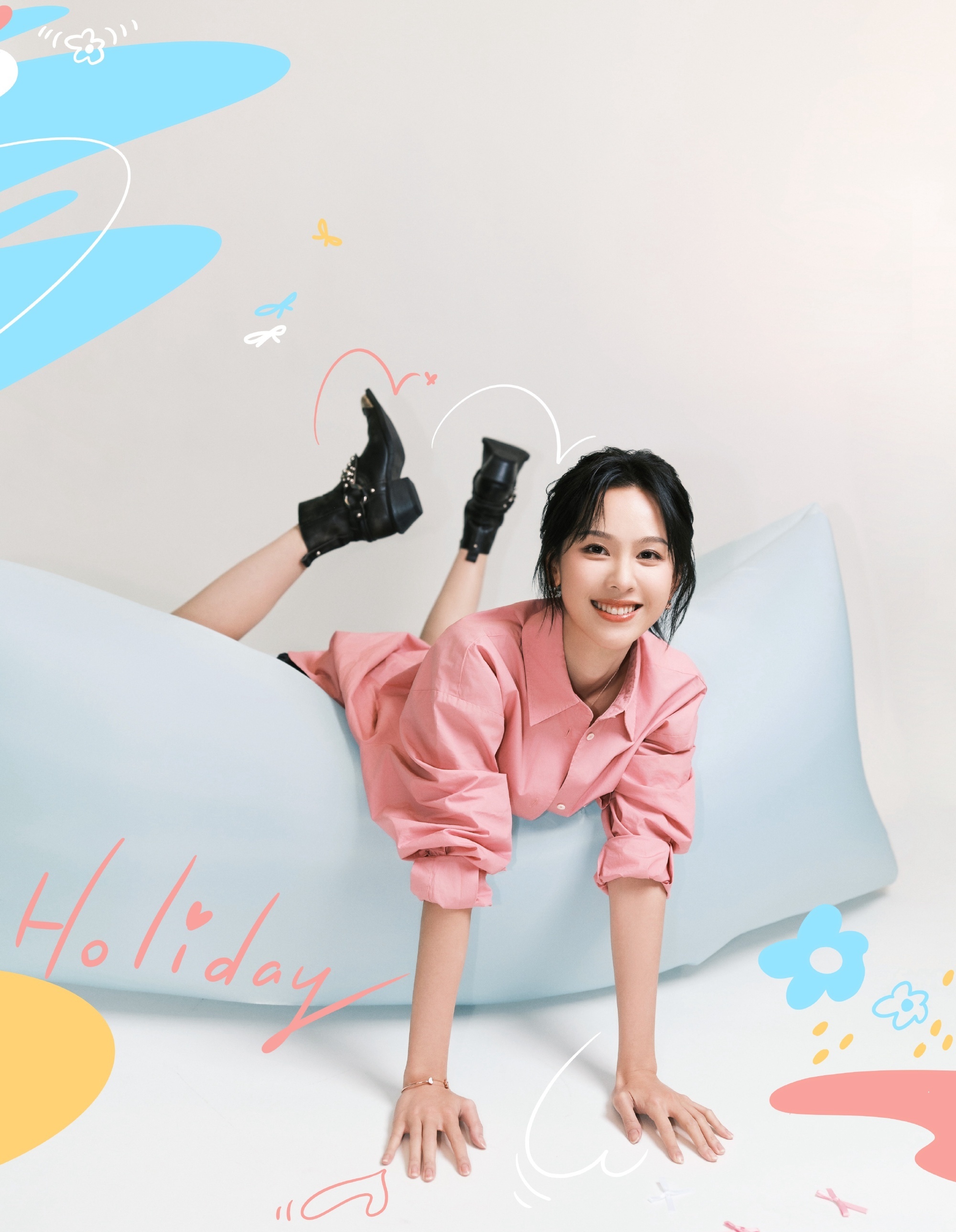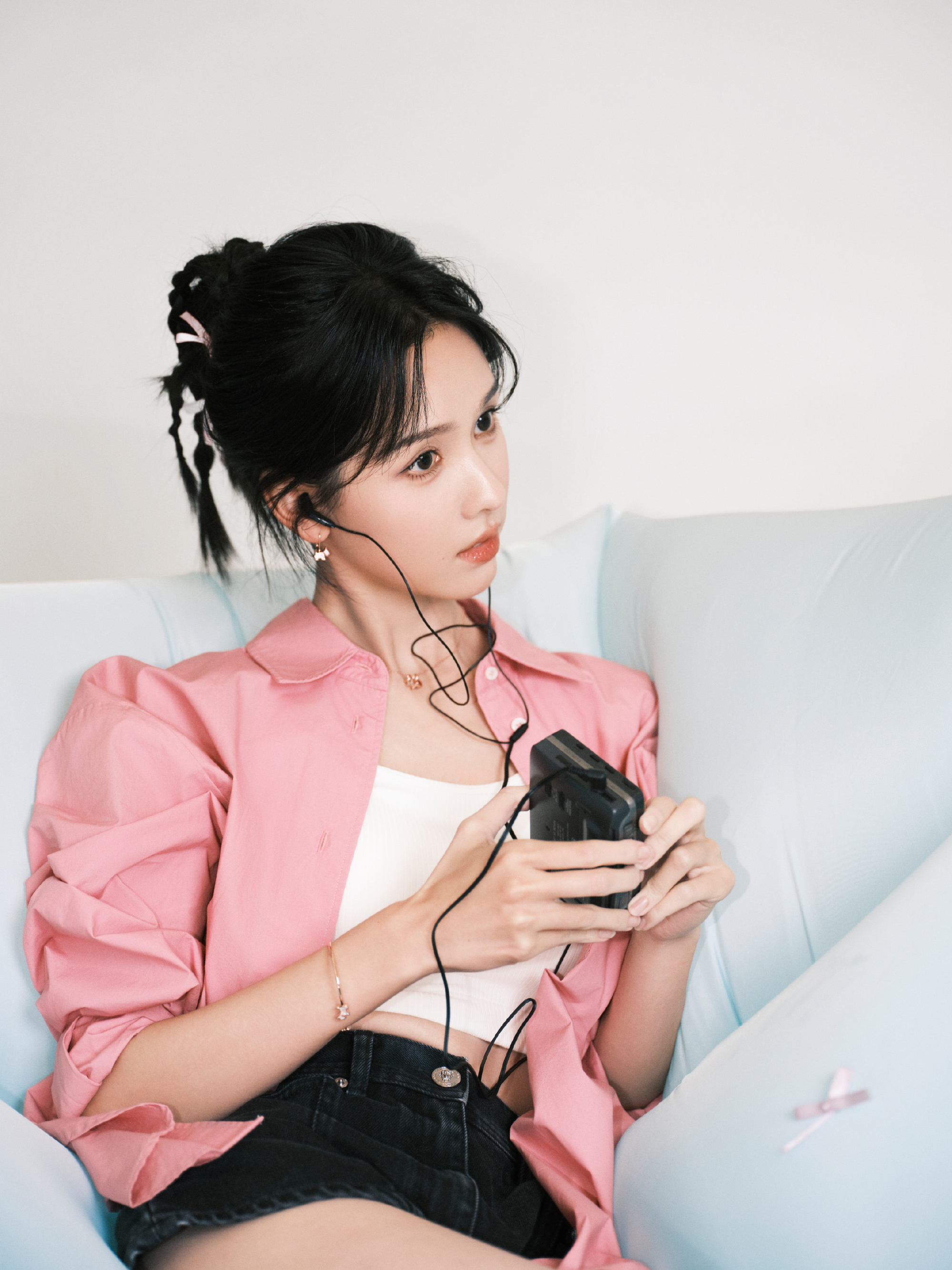 陈都灵,今日份粉色穿搭的元气美腿少女。陈都灵