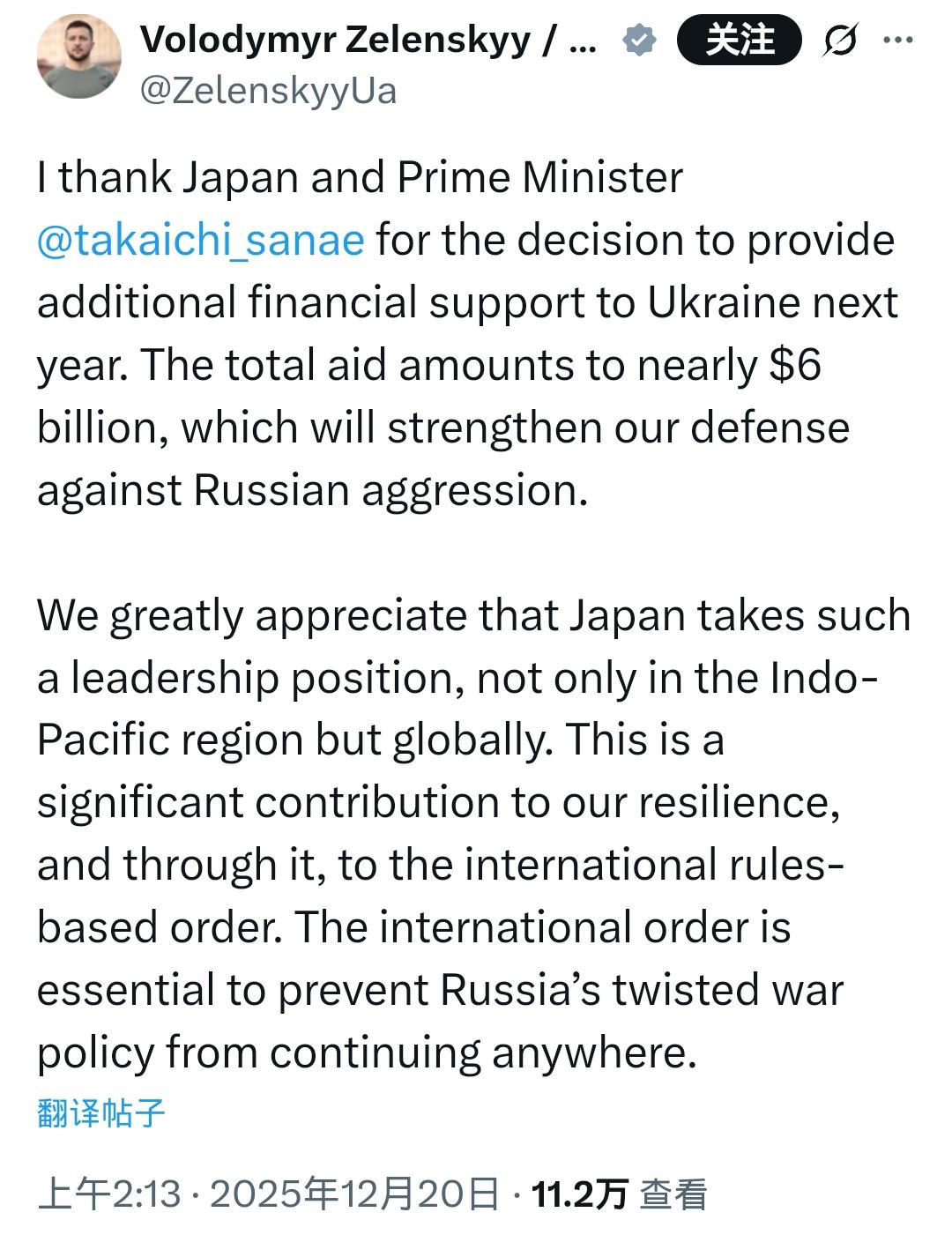 泽连斯基发文感谢日本打钱! 日本援乌又不是头一回,但泽连斯基特意高喊 “全球领导力”“基于规则的秩序”,醉翁之意浮出台面 ——他要的是 “示范效应”! 暗戳戳瞄准至少两个地方: 1、新加坡:嘴上喊 “国际法”,行动上早跟着西方援乌,说白了 “规则” 就是跟着美西方走的话术,说一套做一套; 2、东南某小岛:之前就蹦跶着 “援乌” 刷存在感,现在大哥哥都带头加码,还不赶紧跟上? 等着瞧吧! Source: X