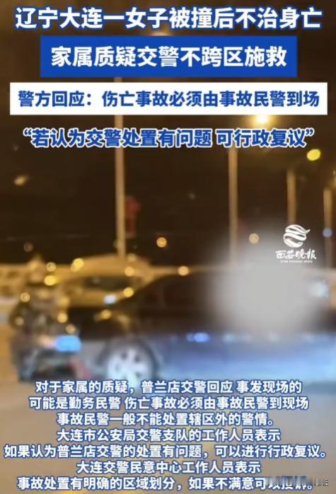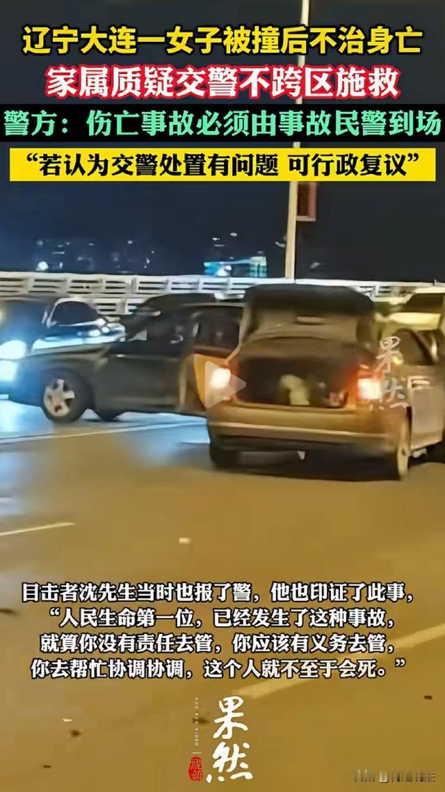 辽宁大连,女子被轿车碾压失血严重,13岁儿子目睹全过程,旁边有交警执勤,却以不属于其辖区为由拒绝参与救援,最终女子离世。家属不能接受,认为如果如果执勤交警帮忙协调帮忙救援,女子就不会离世。 据齐鲁壹点报道,2025年7月11日,大连市普兰店区正在举办啤酒节。 啤酒节当天,附近有非常壮观的烟花表演,吕女士带着13岁的儿子,和带着孩子的男友相约过去看烟花表演。 当天晚上过去参加活动的人非常多,附近发生了严重的交通拥堵,就连立交桥上都停了好几排车。吕女士也学着别人,将车子停在了立交桥上。 案发当晚,吕女士等人看完烟花表演后,准备开车回家。 吕女士的儿子上了副驾驶后,吕女士绕过车身准备打开驾驶室的门,正在这时候,后方一辆轿车冲了过来,将吕女士的车往前推动了十几米,吕女士被卷入车下遭到碾压。 据吕女士的家属称,案发路段限速60,如果肇事车辆按照限速行驶,不可能两辆车都撞报废,案发时肇事车主穿的还是拖鞋。 案发后,现场很多好心人帮忙打110和120。案发地点不远处,就有几名普兰店区的执勤交警,两地相隔不过3分钟路程,可是他们对吕女士这边的事故不管不问。 有好心群众找到他们,要求他们参与处理事故,可是他们却说,他们是普兰店区的,案发地点属于金州区的辖区,发生的事故不归他们管。 因为案发地离金州区比较远,而且当天晚上交通拥堵,40分钟后120救护车才赶到,可金州区的交警迟迟没能赶到,直到事故发生一个多小时才姗姗来迟。 7月13日,吕女士救治无效离世,死亡原因为脾破裂和肝破裂导致的失血性休克死亡。 案发后,交通事故责任认定显示,肇事车主疏忽大意,未按操作规范安全驾驶,负事故主要责任。吕女士未按规定停车,负事故的次要责任。 案发后,吕女士13岁的儿子成了孤儿,而吕女士既没房子,也没财产,孩子以后的生活都成了问题。 吕女士的亲属怎么也想不通,案发当时,旁边的交警为什么不能过来实施援助呢?如果他们过来帮忙调车援助,吕女士早一点接受救援,她根本就不会离世。 目击者沈先生称,人民生命第一位,当天晚上举办大型活动,两地交界处发生的事故,普兰店交警应该管,即便没有责任管,也应该有义务管。 吕女士是失血过多死亡的,如果当时他们帮忙协调协调,赶紧找车把吕女士救走,吕女士也不会离世。 对于这种说法,普兰店交警回应称,当天晚上,案发地点那几个很可能是勤务民警,伤亡事故必须由事故民警现场处理,而事故民警不能处理辖区外的警情。 那么,本案从法律角度应该如何认定? 首先,《道路交通安全法》第二十二条第一款规定:机动车驾驶人应当遵守道路交通安全法律、法规的规定,按照操作规范安全驾驶、文明驾驶。 本案中,肇事车主疏忽大意,未按操作规范安全驾驶,且穿着拖鞋驾驶,明显违反此规定。 同时,《道路交通安全法》第五十六条规定:机动车应当在规定地点停放。禁止在人行道上停放机动车;但是,依照本法第三十三条规定施划的停车泊位除外。在道路上临时停车的,不得妨碍其他车辆和行人通行。 吕女士未按规定停车,也违反了相关规定。因此,交通事故责任认定肇事车主负主要责任,吕女士负次要责任,符合法律规定。 现在的关键是,吕女士的家属和车祸目击者都认为,案发当晚,附近普兰店区的交警明明离得很近却拒绝参与救援。 那么,普兰店区的交警是否应该对两地交界处发生的事故进行处理? 《人民警察法》第二十一条规定:人民警察遇到公民人身、财产安全受到侵犯或者处于其他危难情形,应当立即救助;对公民提出解决纠纷的要求,应当给予帮助;对公民的报警案件,应当及时查处。 本案中,吕女士遭受严重碾压伤害,处于极度危难情形,即便普兰店区的执勤交警属于勤务民警,并非事故民警,但也不能忽视公民的生命安全。 执勤交警以事故需事故民警处理且不能跨辖区为由不实施救援,这种做法与《人民警察法》的规定存在冲突。 虽然按照内部的警情处理管辖制度,事故民警有辖区限制,但在公民生命面临紧迫危险时,不能以此为借口置若罔闻。 此外,《宪法》也强调了国家尊重和保障人权,每位公民的生命权都受法律保护。 交警作为国家公职人员,肩负维护公共安全和人民生命财产安全的重要职责,在紧急情况下有责任第一时间实施救助。 尽管目前没有直接明确的法律条文规定执勤交警这种不作为行为应承担的具体责任,但从行政法角度看,交警的行为可能构成行政不作为。 依据《行政诉讼法》规定,公民认为行政机关不作为侵犯其合法权益的,可以依法提起行政诉讼。 吕女士家属如果认为交警未救援的不作为与吕女士的死亡存在因果关系,可以通过行政诉讼要求相关部门承担相应的责任,包括承担一定的赔偿责任,以保障吕女士13岁儿子日后的生活。 最后,对于普兰店区交警拒绝帮忙处理吕女士事故一事,您怎么看?
