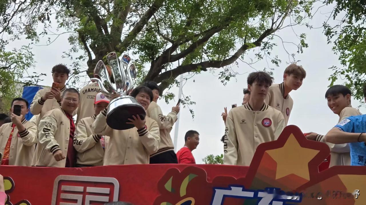 在广东省超足球比赛中,吴川青年队夺得了冠军。今天在他们的家乡湛江吴川,当地举办了盛大的球迷巡游活动,也把吴川当地的传统文化飘色一同进行了巡游展示。不过当天比赛结束,奖杯不是摔坏了吗?这么短的时间内又重新获取了一个新的奖杯。[呲牙][呲牙]
