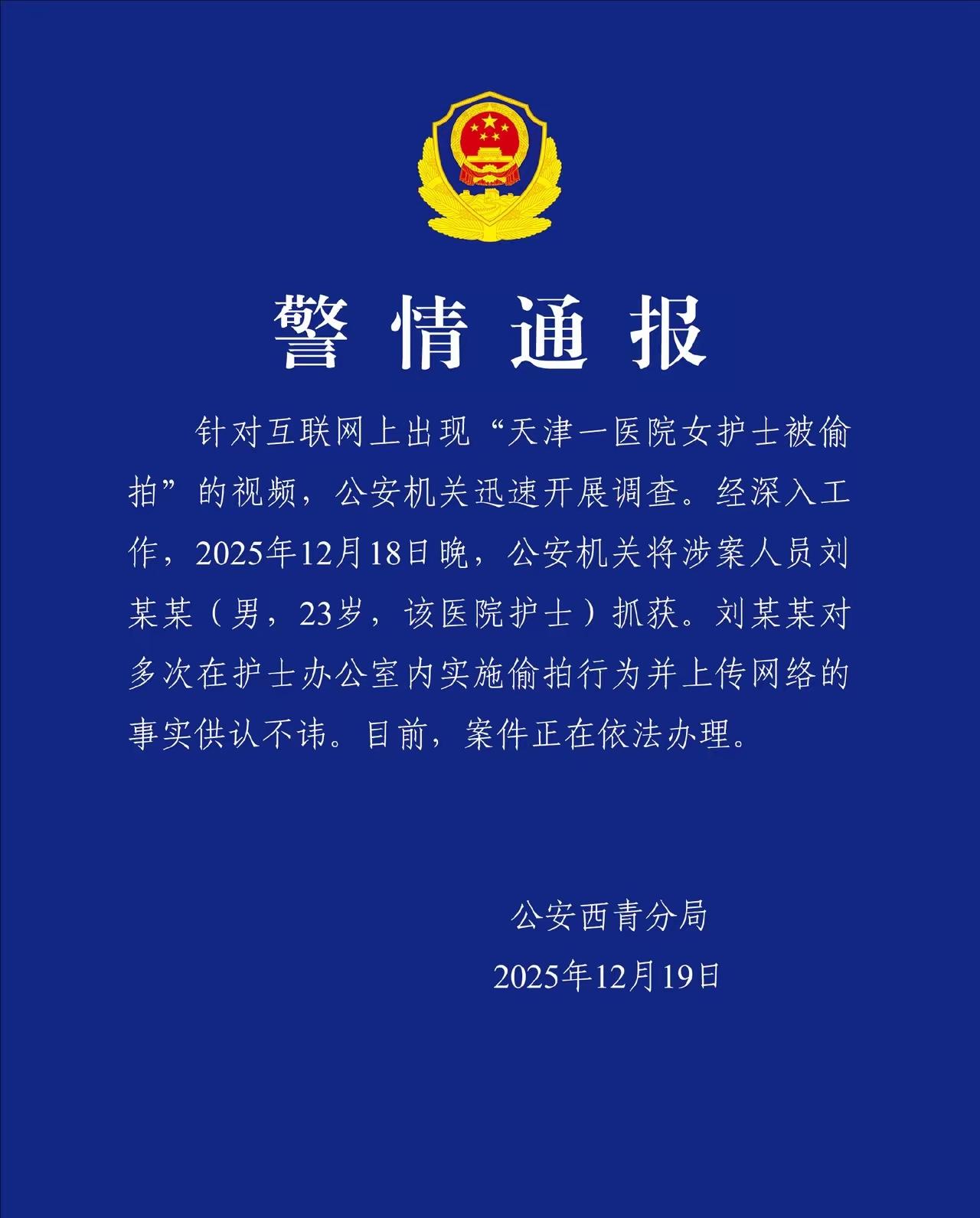 天津的医院女护士被偷拍事件,真没想到还是被同事出卖的。 经过警方的缜密立案侦查,这起网络上女护士被偷拍的视频,这会真是有个定论结果了,年仅23岁的刘某,在办公室偷拍身边的女护士,这会被逮住了。 真是可恨呀!这医院护士科室里面,居然还藏着这么心怀不轨的同事,而且还对女同事下死手,这种人就该刀刮了! 就应该让这种人,在医院公共场合社死才行,让他知道犯法的代价是有多重。