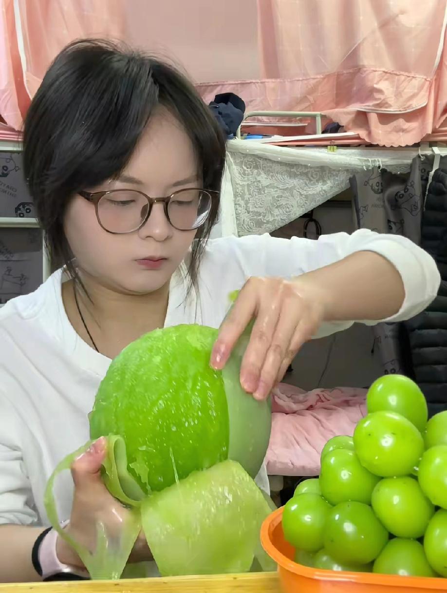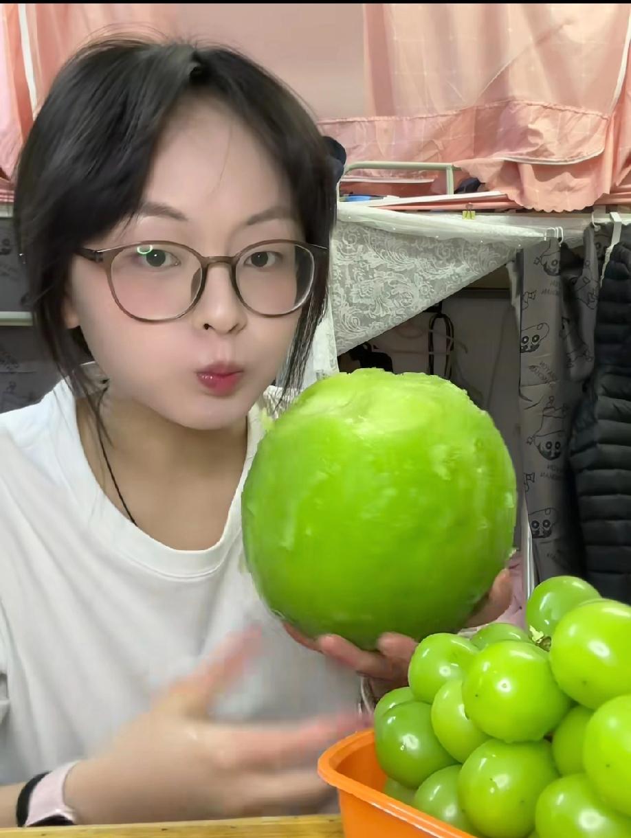 见过阳光玫瑰,没见过这么大的阳光玫瑰,足球这么大。 还以为是假的,结果女子轻而易举的撕开薄薄的一层皮,露出绿色的果肉。咬一口,汁水饱满,软嫩香甜,惹得人口水都泛滥了。 所以这真的是阳光玫瑰?我抱着好奇心打开评论区,破案了,原来是玉菇甜瓜放冰箱里冷冻一晚上,然后温水化开吃。 原来现在看视频还得懂常识,不然真被骗了,还以为是哪个农业大学学长毕业论文给吃了。