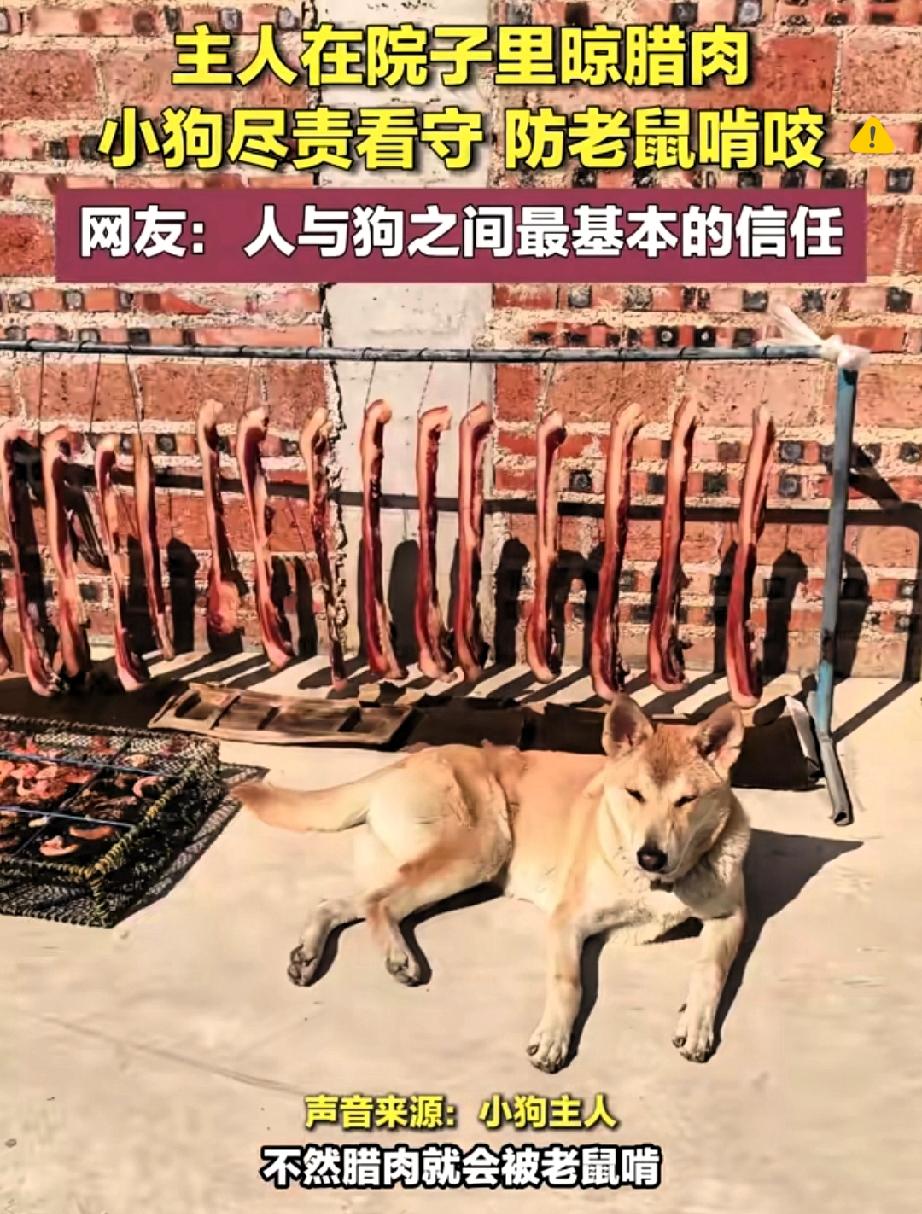 广东这只狗狗的“边界感”,真的比人还拎得清! 主人随口一句“别让别人偷吃,你也不许动”,它居然当成了必须完成的使命,守着满架腊肉虾仁寸步不离。 要知道狗狗对肉的嗅觉有多灵敏,可它全程耳朵竖得笔直,眼神警惕盯着四周,别说偷吃了,连多余的张望都没有。 这份克制哪里是动物本能,分明是把主人的话刻进了心里,用行动兑现信任。 原来最动人的忠诚从不是刻意训练,而是哪怕面对诱惑,也愿意为你守住承诺。 狗狗听不懂复杂的道理,却能精准捕捉主人的期待,这份纯粹的责任心真的太治愈了。 你家毛孩子有没有做过让你瞬间破防的事?
