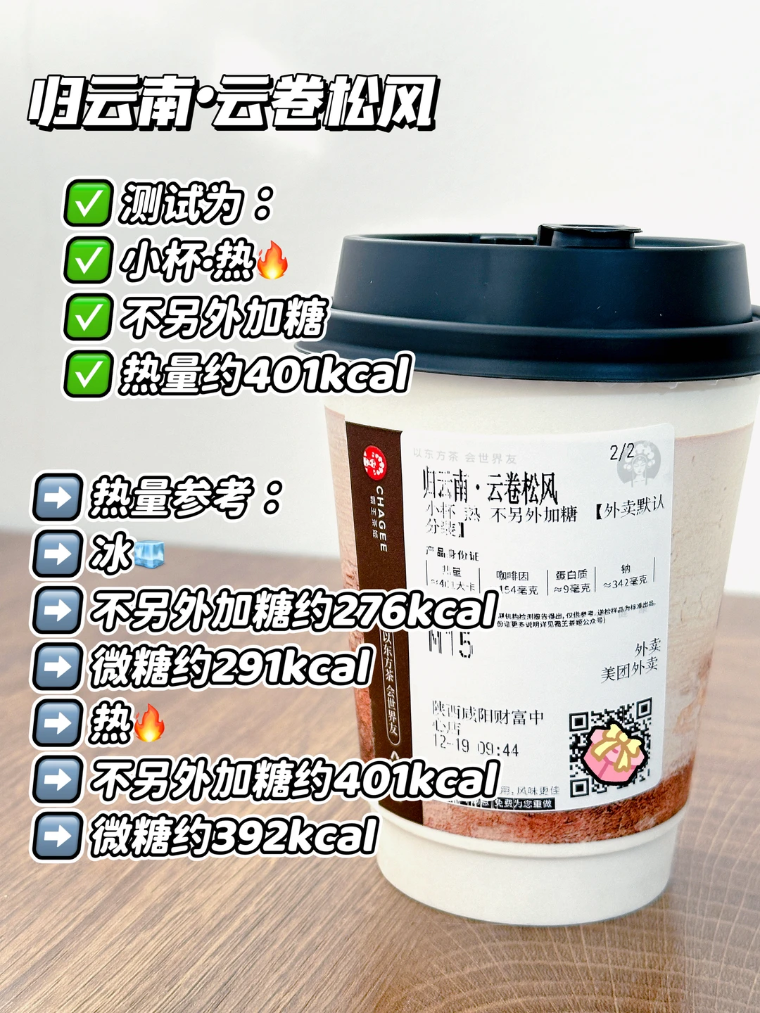 测试为:小杯·热🔥不另外加糖 热量约401kcal