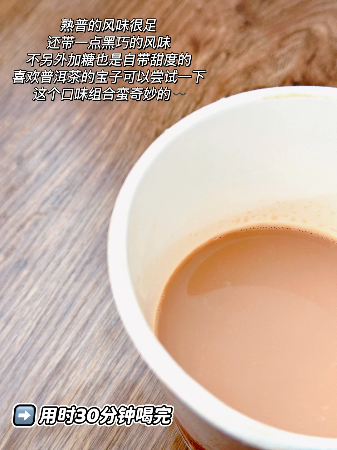 熟普的风味很足,还带一点黑巧的风味〰️不另外加糖也是自带甜度的,喜欢普洱茶的宝子可以尝试一下,这个口味组合蛮奇妙的〰️