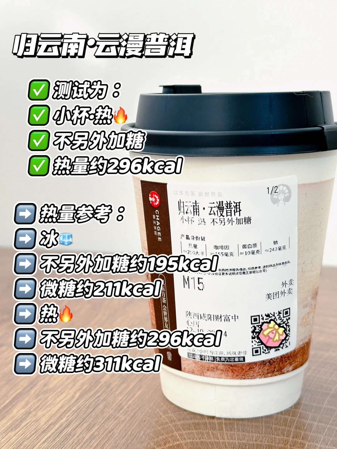测试为:小杯·热🔥不另外加糖 热量约296kcal