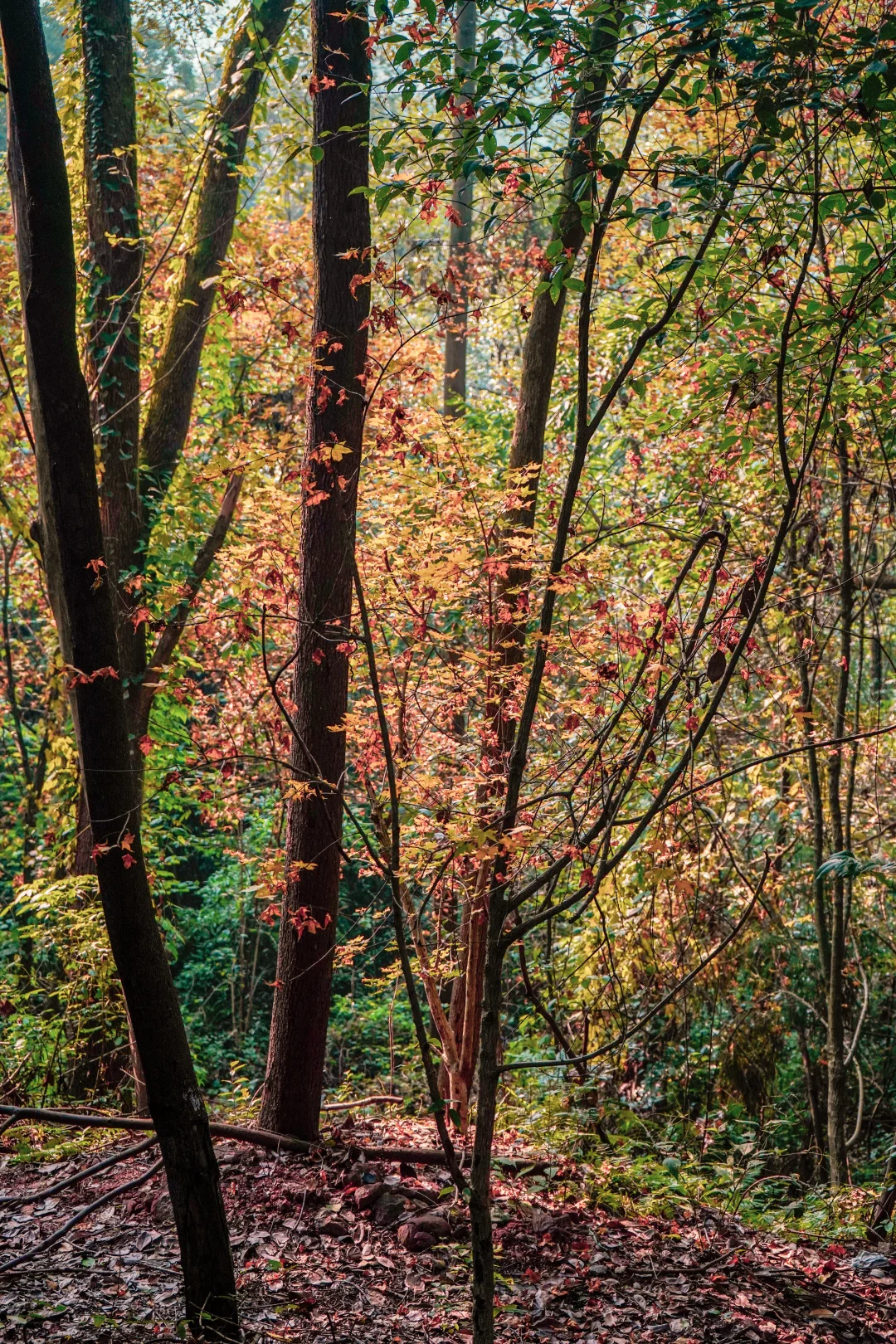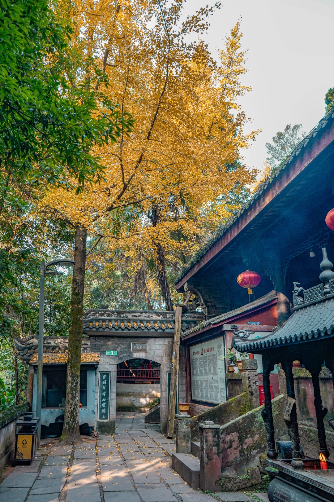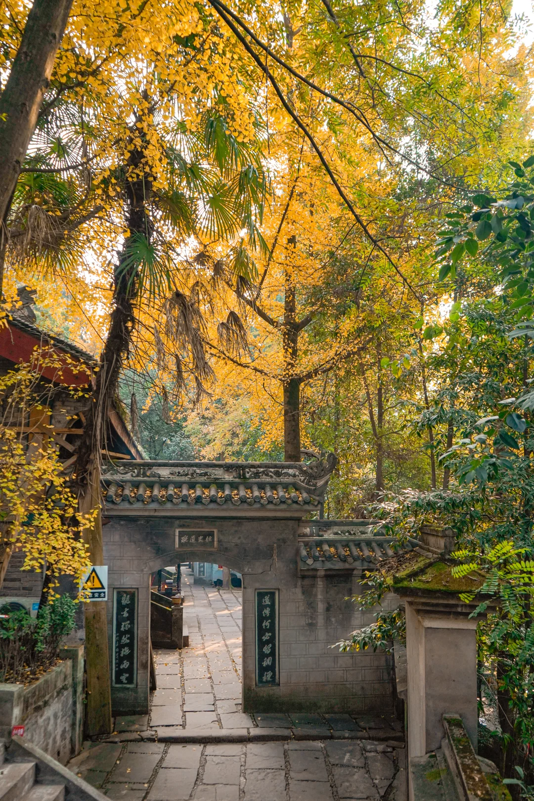 树木葱茂间吊坠着金色银杏