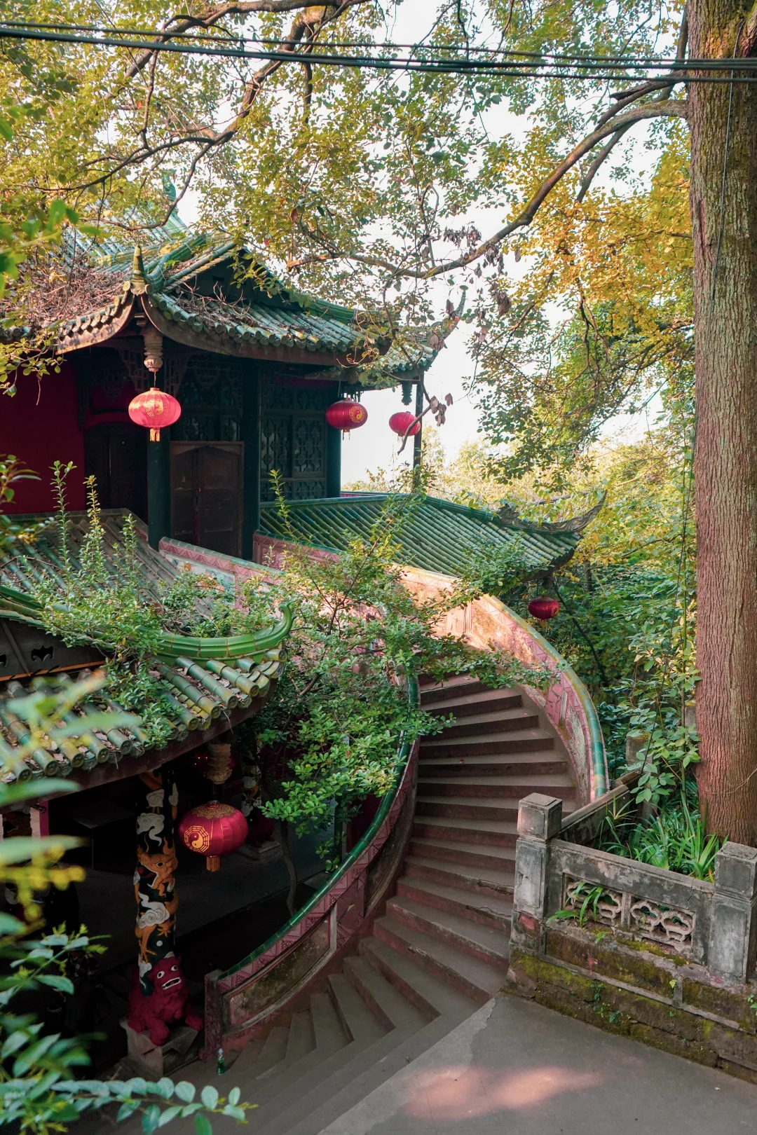 1️⃣殿堂依山,而建沿着登山路线依次展开:山门 → 灵祖楼 → 混元殿 → 八卦亭 → 三清殿 。