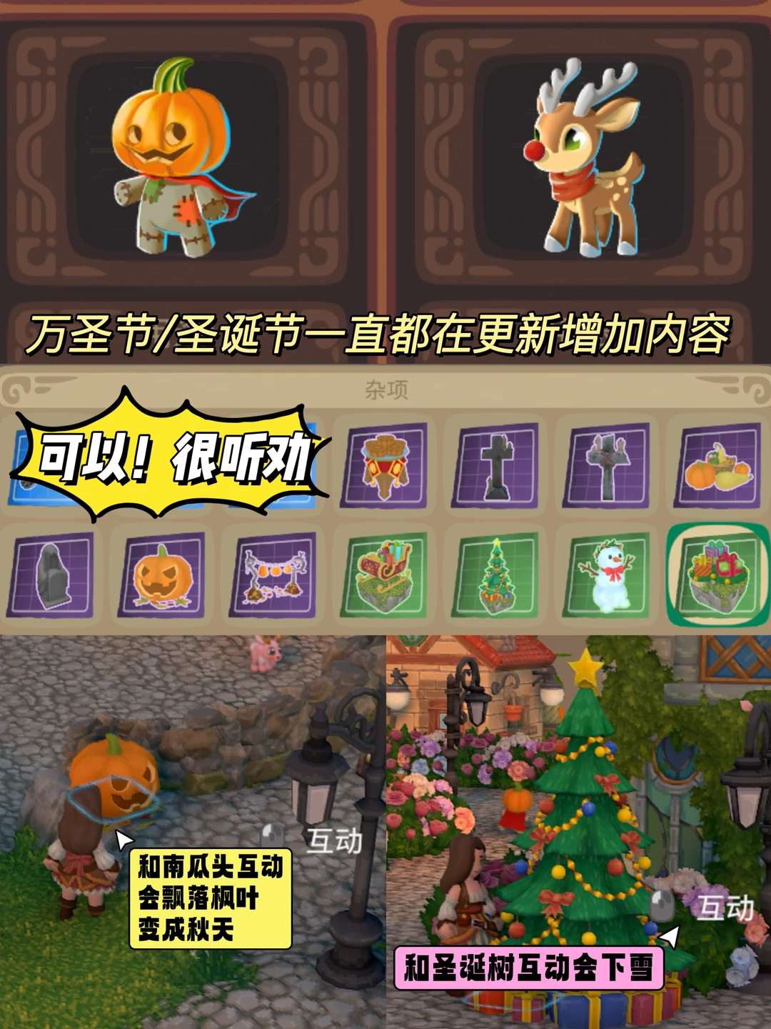💬还有和万圣节装饰-小南瓜🎃互动,以及圣诞节装饰-圣诞树🎄互动,还能让农场飘枫叶🍁和下雪❄️!以后想要什么农场是季节,都能自己选择了‼️