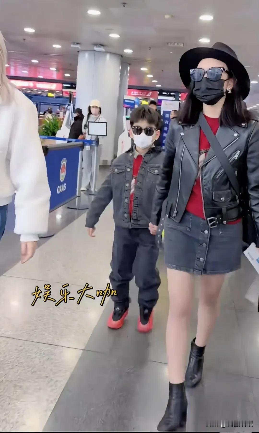 陈妍希带着儿子小星星去海口参加活动“腾讯视频星光大赏”。 母子俩穿着亲子装,都带