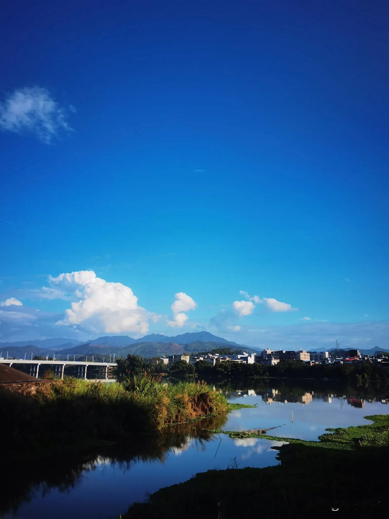 今天的天气特别好,蓝蓝的天上白云飘,水天一色甚美[比心]