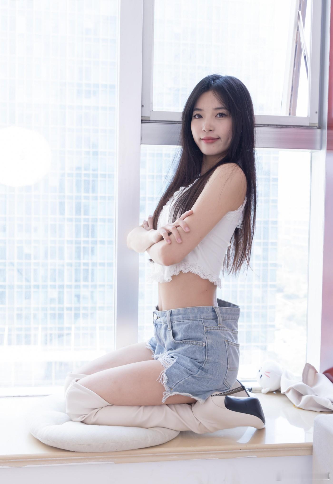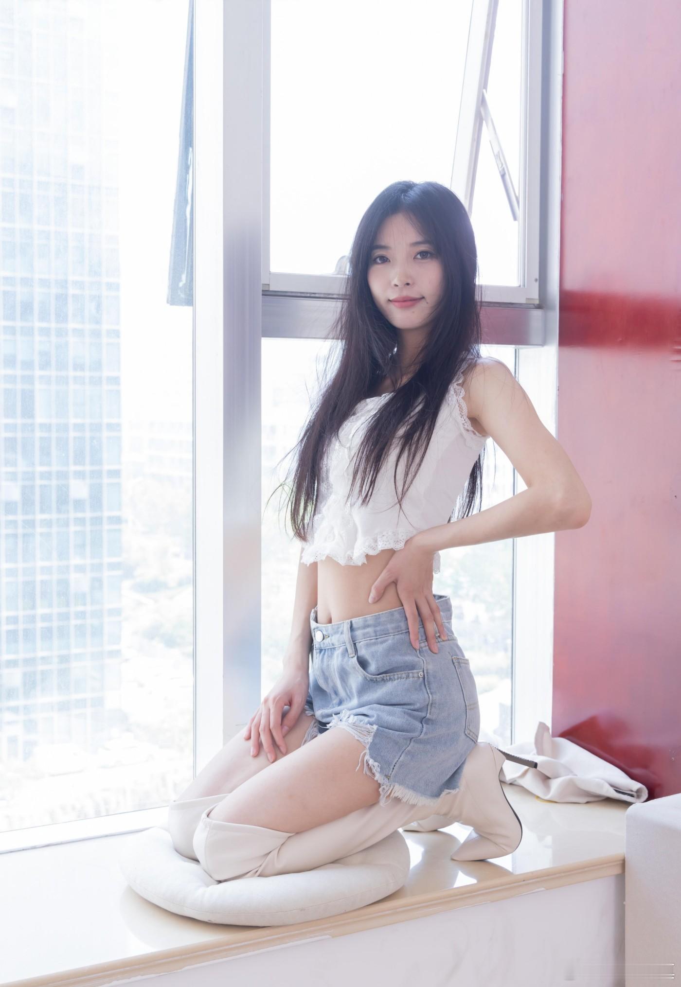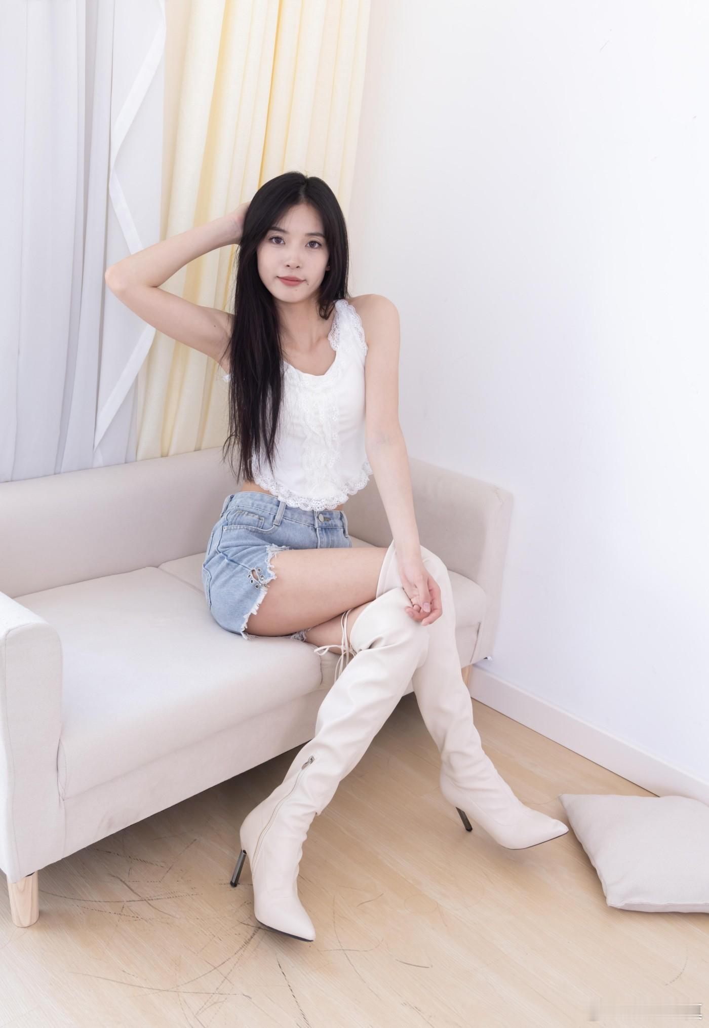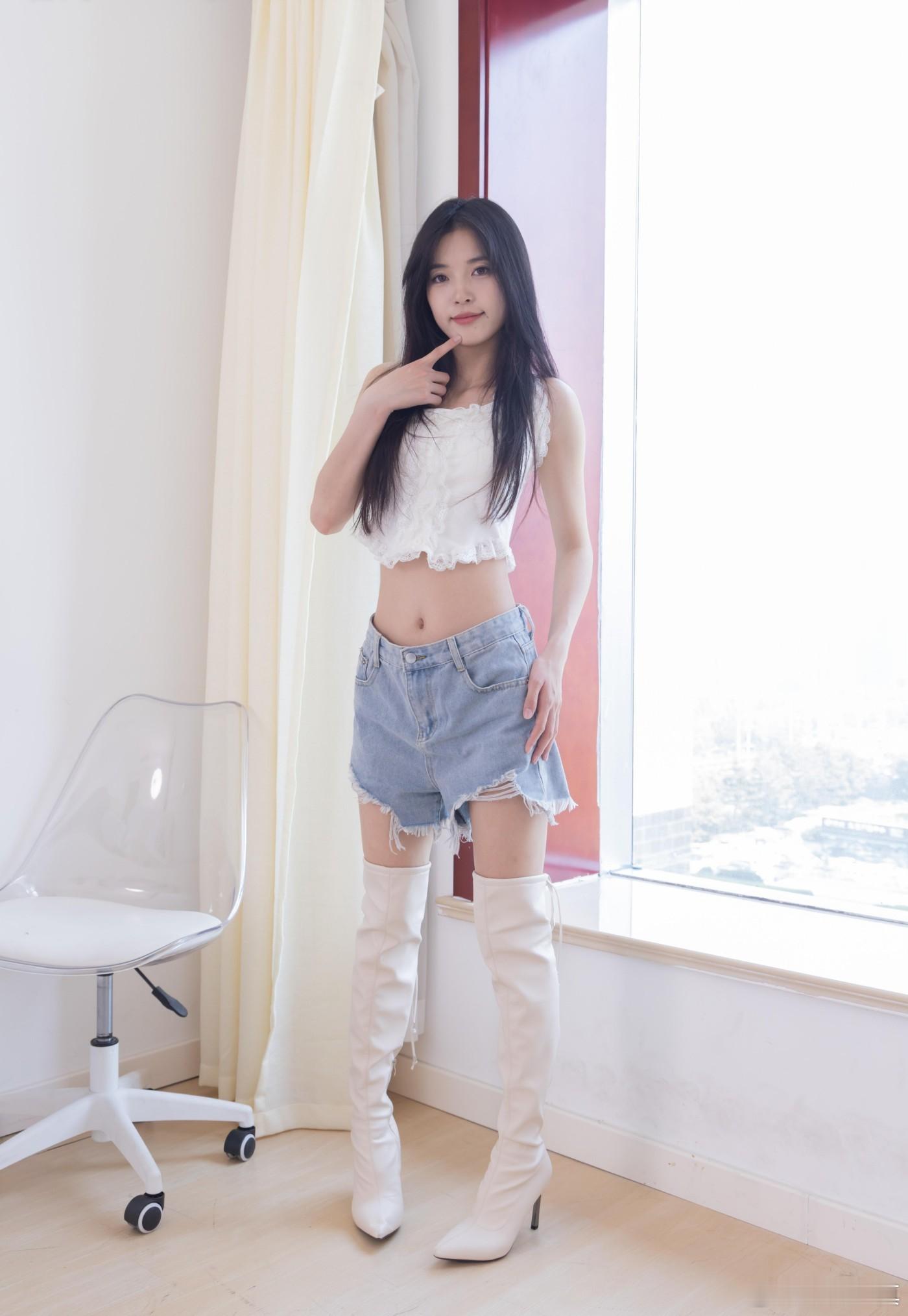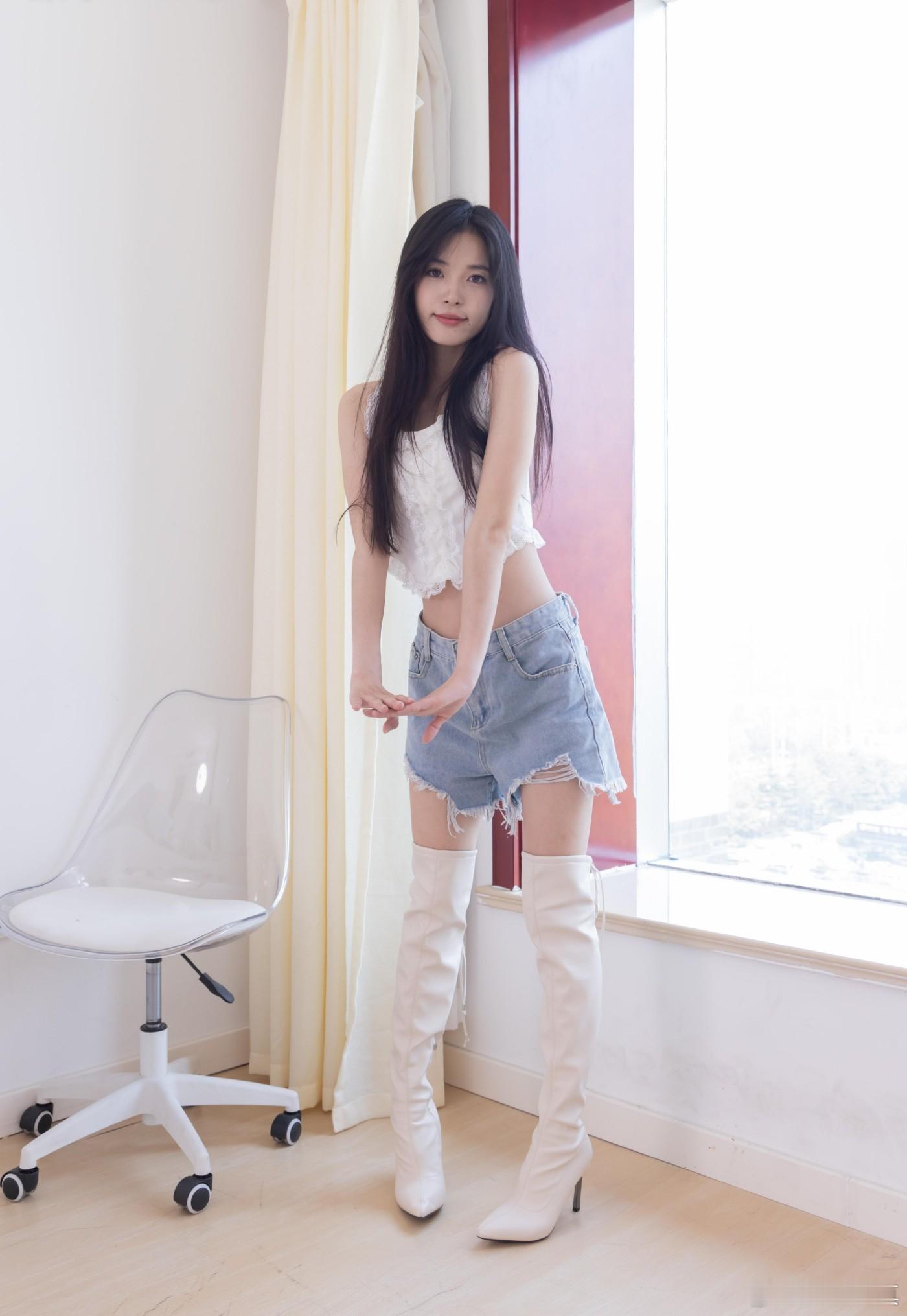 茯苓丨牛仔短裤白色过膝长靴[143P]