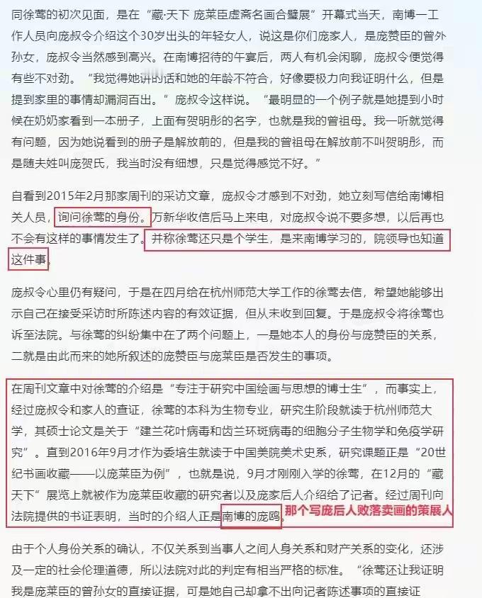 《江南春》从南京博物馆流出到拍卖行,都有哪些知情人: 第一个:徐湖平。曾任南京博物馆馆长,也是在由馆藏划拨省文物商店单据上签字的院长。他那时还是省文物商店的法人代表。 划拨单据签名的保管部主任钱锋、申请人凌波,说不知情也难以服众。现在的钱锋据说是在一所大学工作。 第二个:庞欧。就是写庞家后人落魄,沦落为卖画为生的南京博物馆工作人员庞欧。他这样写的目的是什么? 第三个:徐莺。庞家后人怀疑她的身份,她也拿不出她是庞家后人的证据。 第四个:艺兰斋的负责人。因为他们的《江南春》,明确是来自庞家后人。 这不是普通的一幅画,这是一件国宝文物,一定要查清楚,是怎么流出来的。 还有谁是知情者?