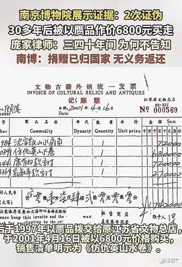 我敢说, 庞叔令今晚是真的要睡不着了, 不是因为5幅画找出来4幅,而是 80多岁的南博前院长说他生病了退休了,古画这事和他没关系。 这桩事儿光听起来就让人堵得慌。当年庞家怀着一腔赤诚,把137件祖传宝贝无偿交给了国家。如今后人想看看自家捐出去的东西,竟比登天还难,非得对簿公堂才能迈进库房的门。 进去一数,五件珍贵画作不翼而飞,其中一幅明代仇英的《江南春》,正以8800万元的天价,躺在北京一家拍卖公司的预展上。你说这讽刺不讽刺? 时间倒回上世纪五十年代,正是国家百废待兴、文博事业亟需扶持的时期。庞家作为江南望族,世代收藏的文物涵盖书画、玉器、青铜器等多个品类,其中不乏宋元明清的珍品。当时的庞家人没有纠结于私产归属,反而觉得“国家保管比自家藏着更稳妥,也能让更多人看到这些宝贝”,于是主动联系文博部门,将137件文物悉数捐赠。据老辈人回忆,捐赠仪式简单朴素,庞家只提了一个心愿:“以后家人想看看这些东西,能让我们进门就行。” 这份朴素的信任,却在几十年后遭遇了冰冷的现实。庞叔令作为庞家后人,从小听着祖辈捐赠文物的故事长大,心中一直藏着对这些“家族记忆”的牵挂。他多次向南博提出参观请求,却屡屡被以“文物保护”“流程复杂”等理由拒绝。从最初的耐心沟通,到后来的反复奔走,再到最终不得不拿起法律武器,庞叔令的无奈背后,是捐赠者与接收方之间信任的逐渐瓦解。 更让人揪心的是库房清点的结果。五幅明确记载在捐赠清单上的画作不见踪影,其中仇英的《江南春》尤为珍贵。仇英作为明代“吴门四家”之一,其作品传世稀少,《江南春》以细腻笔触描绘江南水乡的春景,兼具艺术价值与历史价值。这样一件本该躺在博物馆里供人瞻仰的国宝,却出现在商业拍卖场上,标价8800万元,这与庞家当初无偿捐赠的初衷形成了刺眼的对比。 面对质疑,80多岁的南博前院长以“生病退休”为由撇清关系,这样的回应显然难以让人信服。首先,文物保管是文博机构的核心职责,无论负责人是否退休,都应对任职期间的工作承担相应责任;其次,137件文物是庞家的心血,也是国家的文化财富,失踪事件背后是否存在管理漏洞、甚至人为因素,都需要一个透明公正的调查结果;再者,这件事不仅关乎庞家的个人权益,更影响着社会公众对文物捐赠的信心——如果无偿捐赠的宝贝得不到妥善保管,甚至面临流失风险,未来谁还愿意将自家珍藏的文物献给国家? 文物是历史的见证,更是民族的精神纽带。庞家的捐赠行为,体现的是普通百姓对国家的信任与热爱;而文博机构的职责,不仅是收藏保管文物,更要守护好这份信任。如今,失踪的画作虽已找回4幅,但这件事暴露的问题值得深思:如何完善文物捐赠后的管理机制?如何保障捐赠者的合法权益?如何让文物真正发挥传承文化、连接人心的作用? 各位读者你们怎么看?欢迎在评论区讨论。