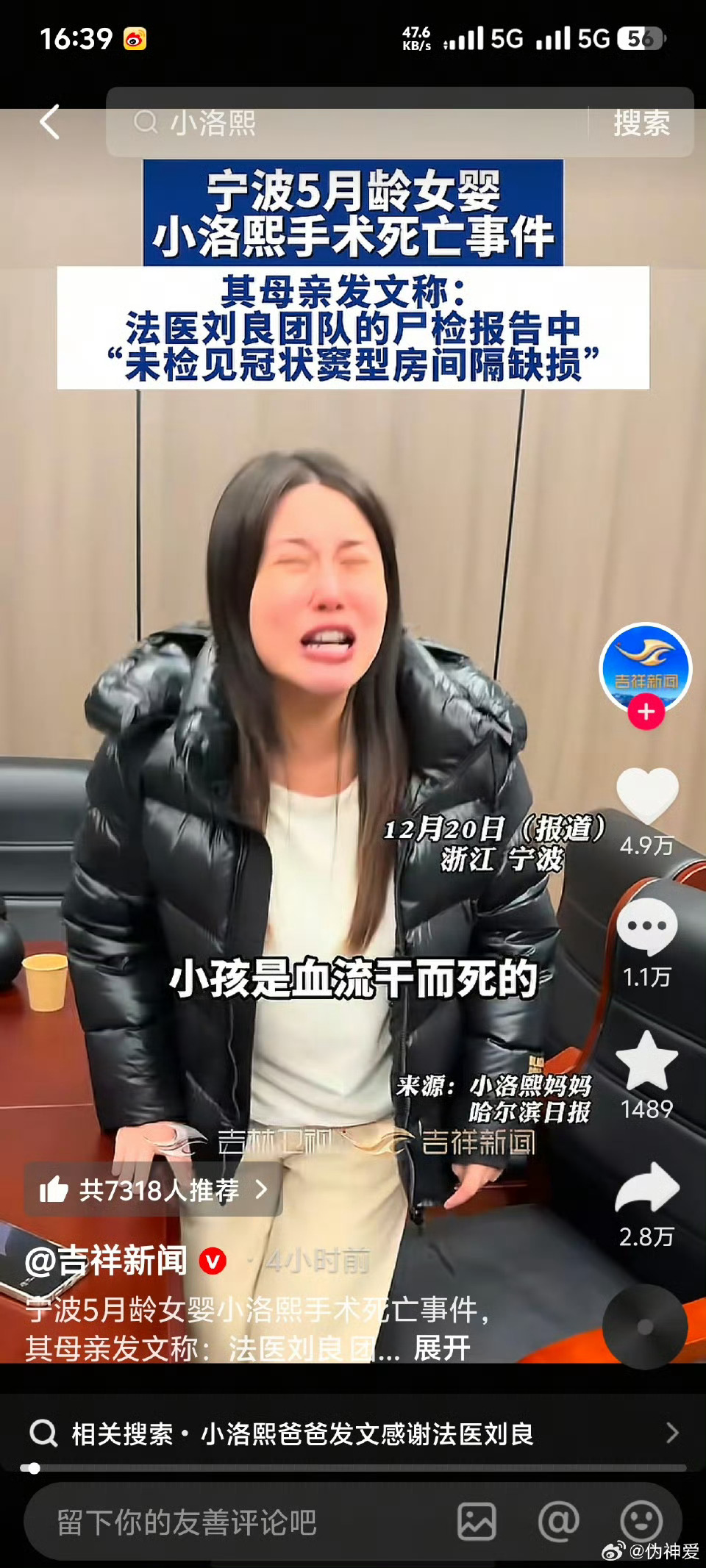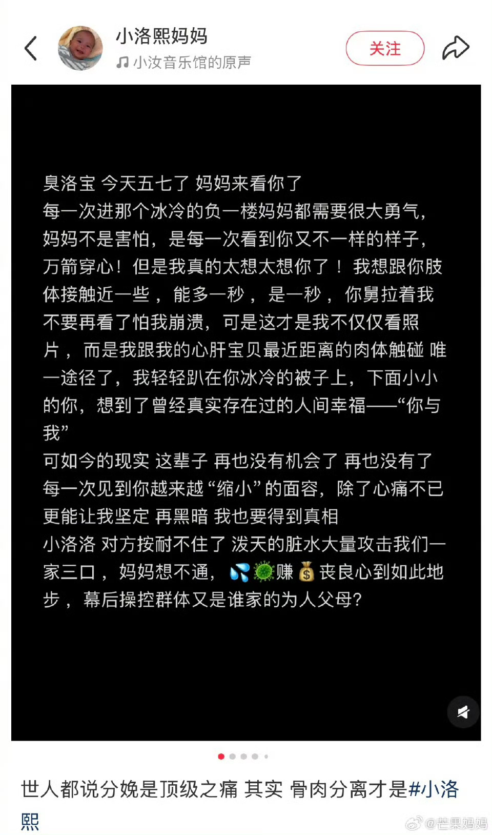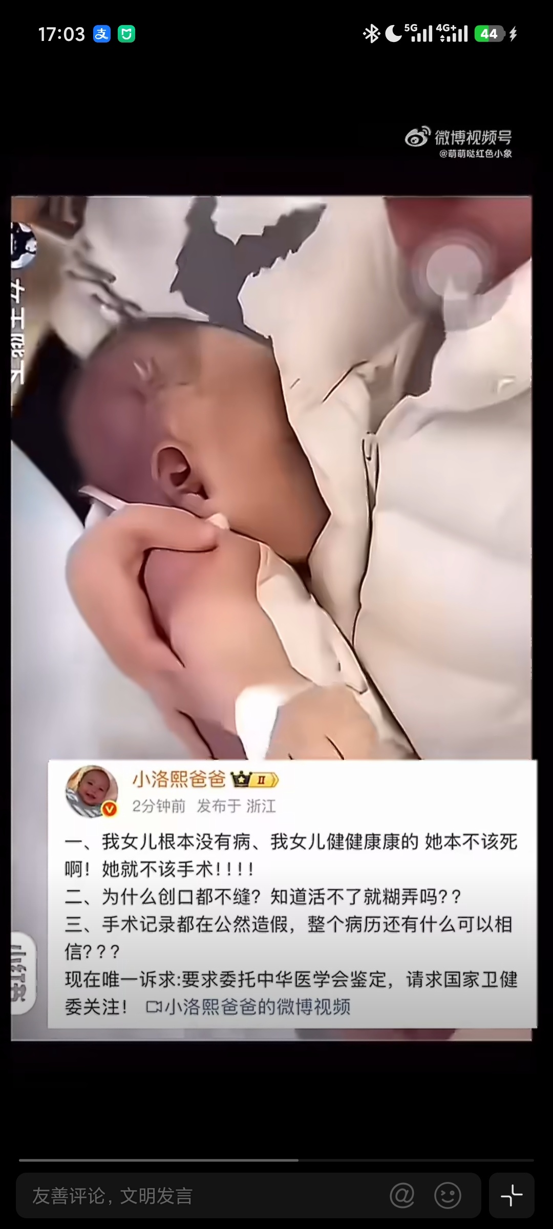 #家属称不方便公布小洛熙完整尸检报告##韩红为小洛熙宝宝发声#2025年11月14日,5月龄早产儿小洛熙在宁波大学附属妇女儿童医院接受心脏房间隔缺损手术时离世。 12月19日晚,洛熙妈妈 发布小洛熙尸检报告。这件事应该有一个清清楚楚、明明白白的最终结果。小孩子刚来到世界上,她还不会说话,她的妈妈是她的“代言人”。 小洛熙的委屈,让她来说吧。