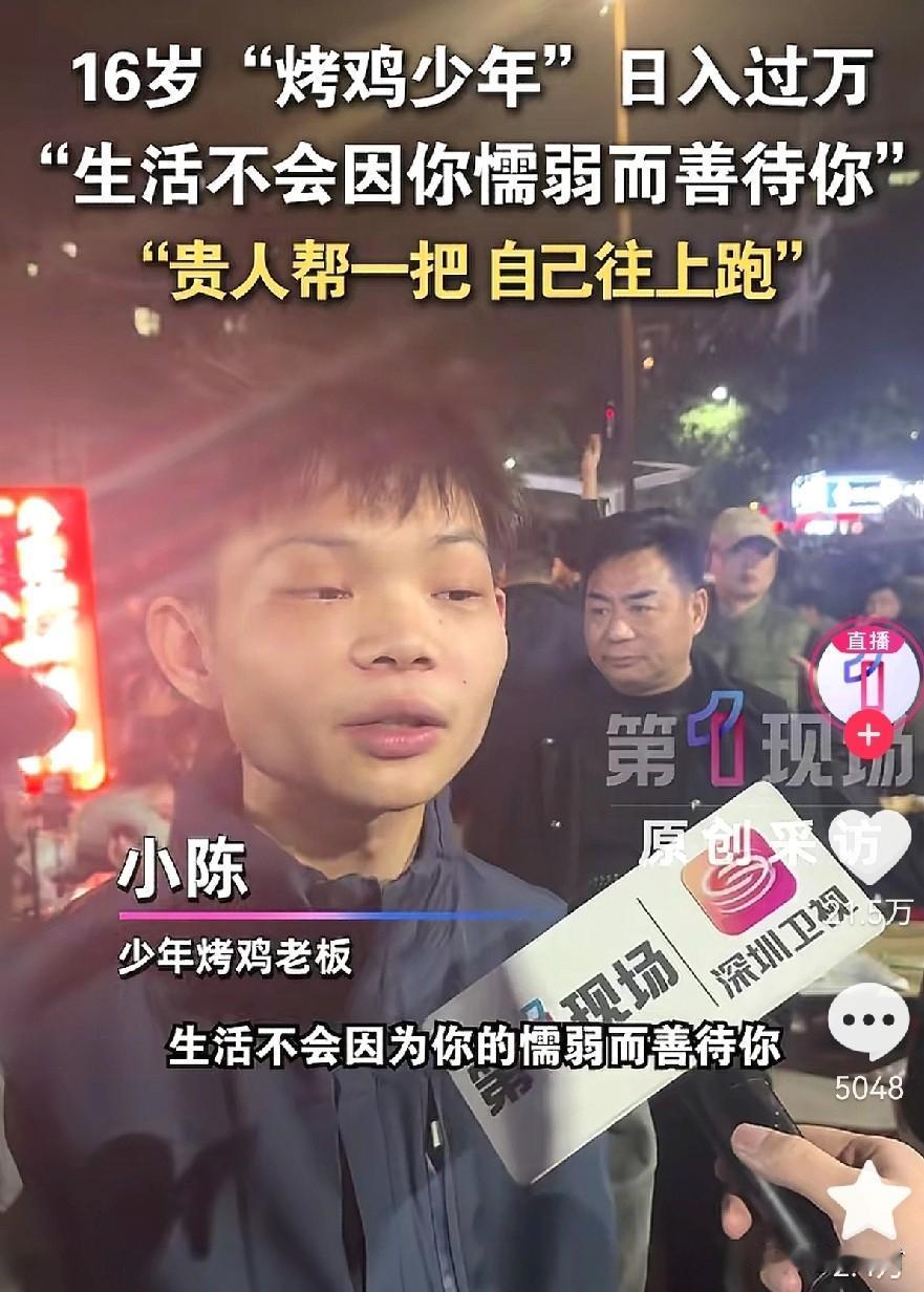 老实说,我不相信这去头去脚的鸡是他口中的“新鲜鸡”,这不跟西贝的“西装鸡”一模一样吗? 深圳16岁的烤鸡少年火了不稀奇,网红李伟刚点赞且帮助过的人,值得肯定,只是这少年不经扒啊。 68块一只这么小的烤鸡,贵不贵?不可能是新鲜的走地鸡,做不到这么大小一致,切口都那么平整,只有成箱的冻鸡差不多,再加上被网友的“火眼金睛”发现的佐料都是科技与狠活,这价格就如同李伟刚说的,有点不值。 当然,平心而论,少年的经历确实值得肯定。16岁的年纪,没有躺平啃老,反而早早扛起生活的担子,摆摊烤鸡时那份老成的态度、对未来的清晰规划,比很多浑浑噩噩的成年人都强。这份踏实肯干的劲头,确实配得上一波关注和掌声。 只是不知道这位“网红”的火又能持续多久呢?感觉鸡排哥都销声匿迹了一样,据说回到景德镇了,也不知道下次“巡炸”又是在哪里了?对于这位励志少年,还是想说,“加油”。